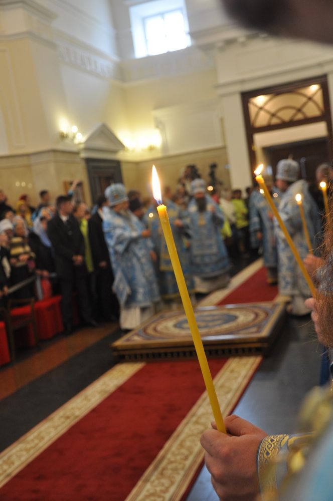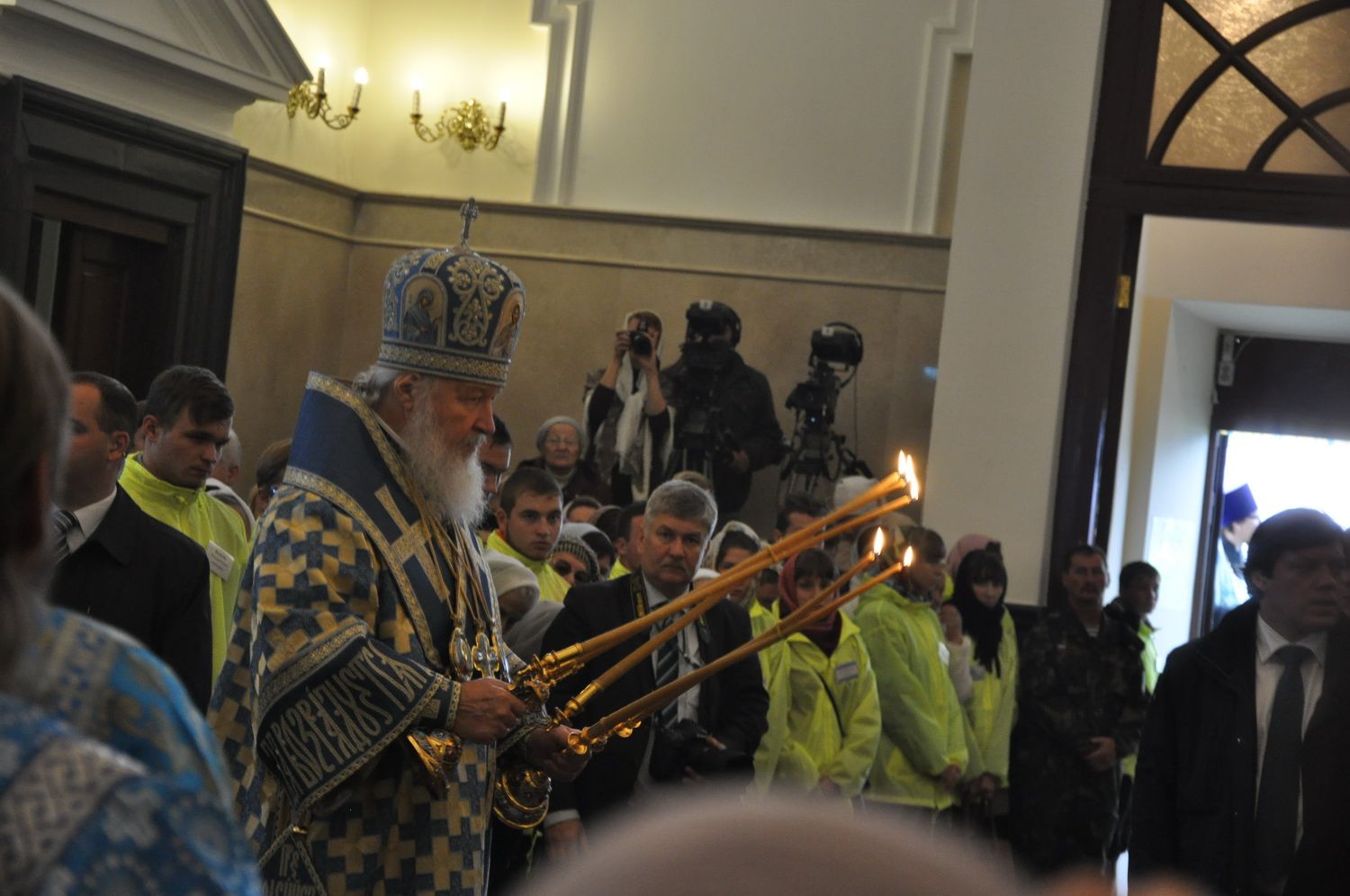После сугубой ектении Святейший Патриарх Кирилл совершил молитву о мире на Украине.