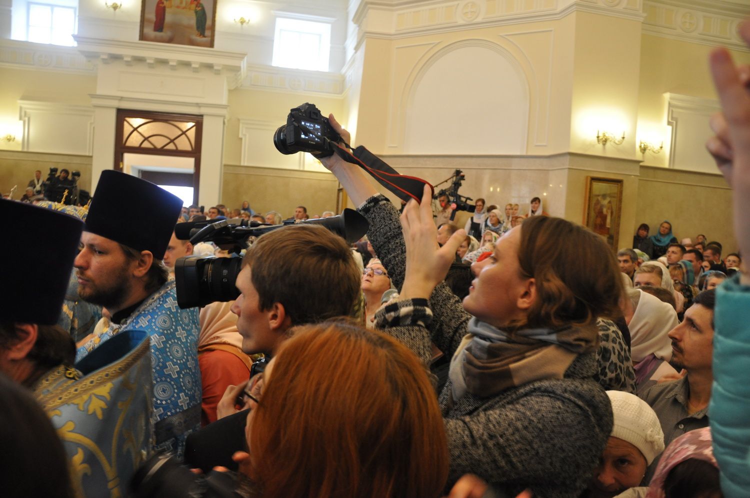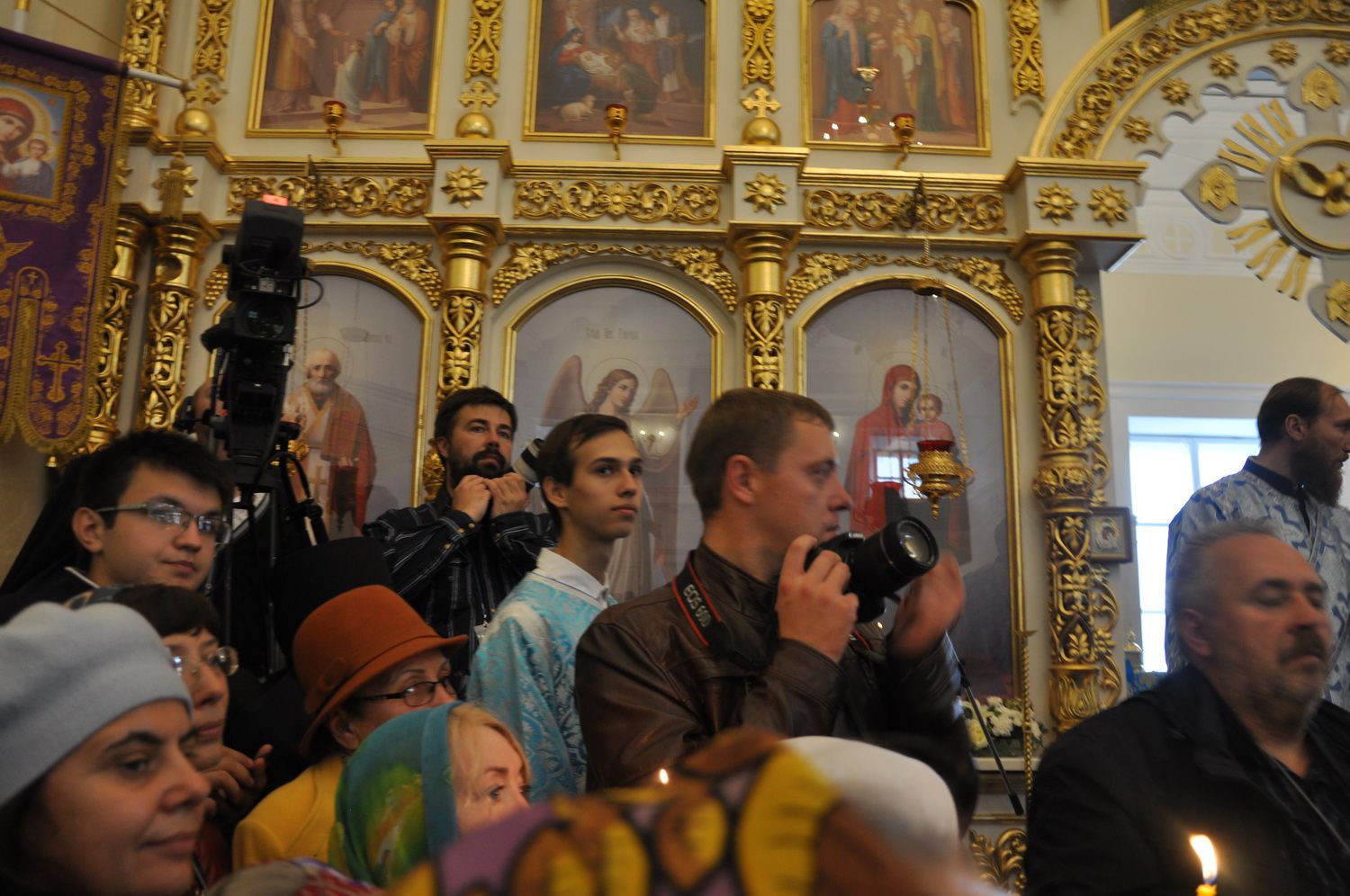 Прямую трансляцию вел Краевой информационный телеканал «Катунь-24». Комментировал происходящее пресс-секретарь Барнаульской епархии, протоиерей Владимир Матусов. Также богослужение транслировалось на экран, установленный на площади перед храмом.