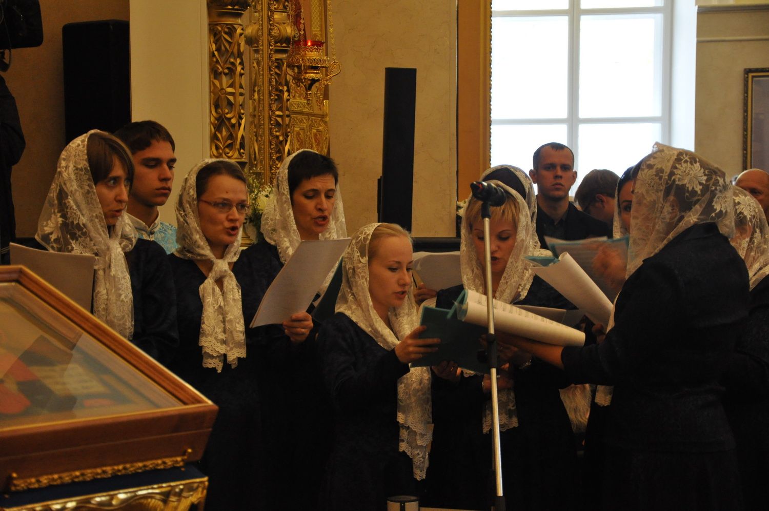 Богослужебные песнопения исполнили мужской и смешанный хоры Покровского кафедрального собора г. Барнаула (регент — священник Тимофей Самодинов, Ю.В.Никишина)