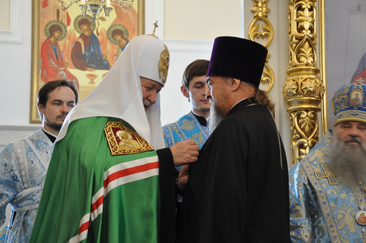 Его Святейшеству сослужили митрополит Санкт-Петербургский и Ладожский Варсонофий, управляющий делами Московской Патриархии; митрополит Новосибирский и Бердский Тихон; митрополит Томский и Асиновский Ростислав; митрополит Барнаульский и Алтайский Сергий; епископ Солнечногорский Сергий, руководитель Административного секретариата Московской Патриархии; епископ Искитимский и Черепановский Лука; епископ Карасукский и Ордынский Филипп; епископ Каинский и Барабинский Феодосий; епископ Рубцовский и Алейский Роман; епископ Горноалтайский и Чемальский Каллистрат; епископ Бийский и Белокурихинский Серапион; епископ Славгородский и Каменский Всеволод и сонм духовенства Алтайской митрополии.
