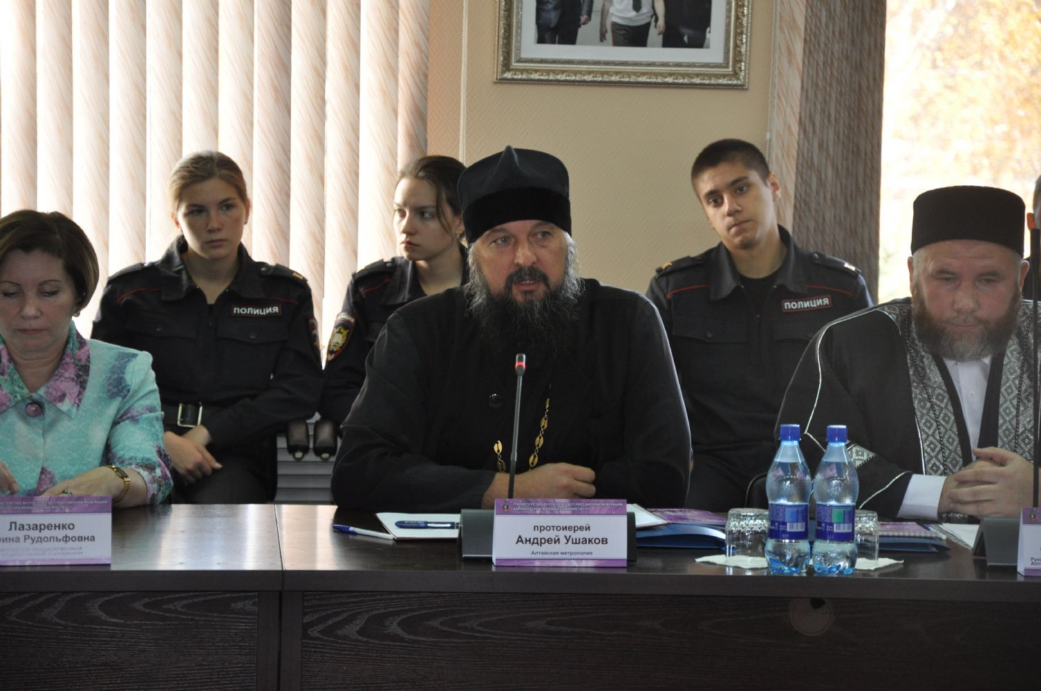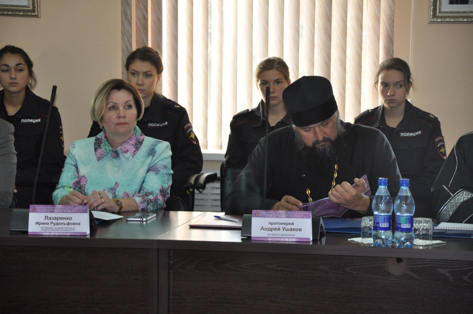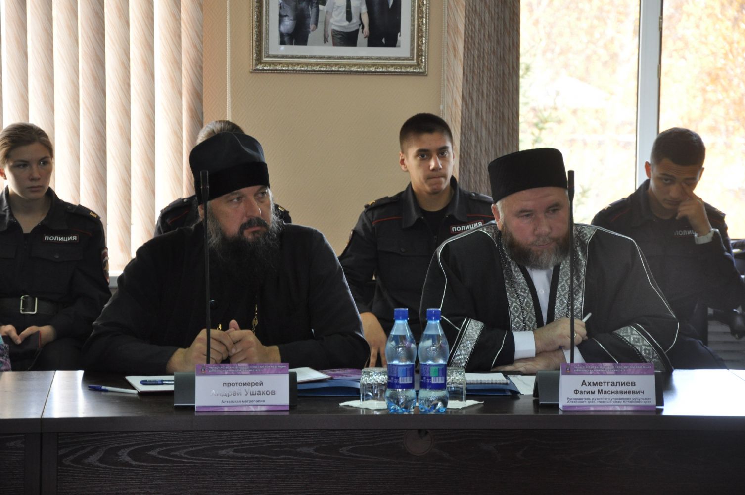 На пленарном заседании с приветственными словами выступили начальник БЮИ МВД России полковник полиции А.А. Андреев, начальник управления Алтайского края по культуре и архивному делу Е.Е. Безрукова, ректор АлтГАКИ Г.А. Буевич, ректор АлтГПУ И.Р. Лазаренко, глава краевого духовного управления мусульман муфтий Ф. М. Ахметгалиев, председатель епархиального отдела по взаимодействию с вооруженными силами и правоохранительными органами протоиерей Андрей Ушаков. В работе конференции приняли участие преподаватели и студенты Барнаульского юридического института.