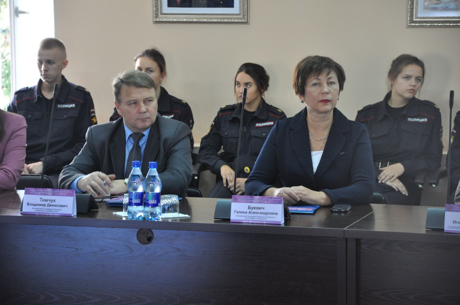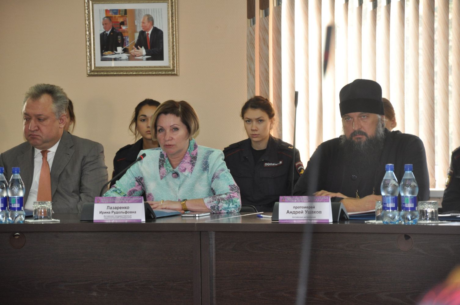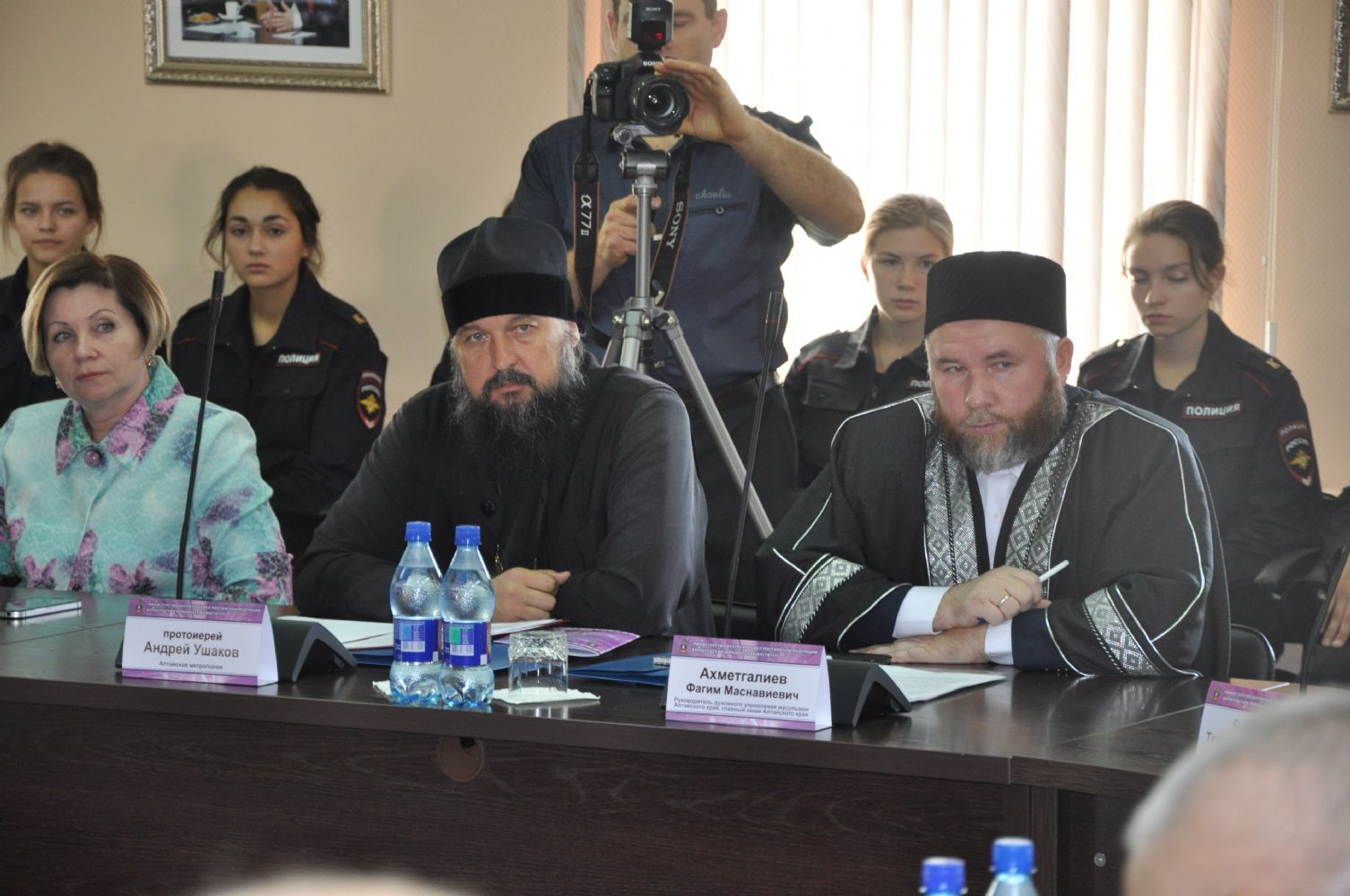 На пленарном заседании с приветственными словами выступили начальник БЮИ МВД России полковник полиции А.А. Андреев, начальник управления Алтайского края по культуре и архивному делу Е.Е. Безрукова, ректор АлтГАКИ Г.А. Буевич, ректор АлтГПУ И.Р. Лазаренко, глава краевого духовного управления мусульман муфтий Ф. М. Ахметгалиев, председатель епархиального отдела по взаимодействию с вооруженными силами и правоохранительными органами протоиерей Андрей Ушаков. В работе конференции приняли участие преподаватели и студенты Барнаульского юридического института.