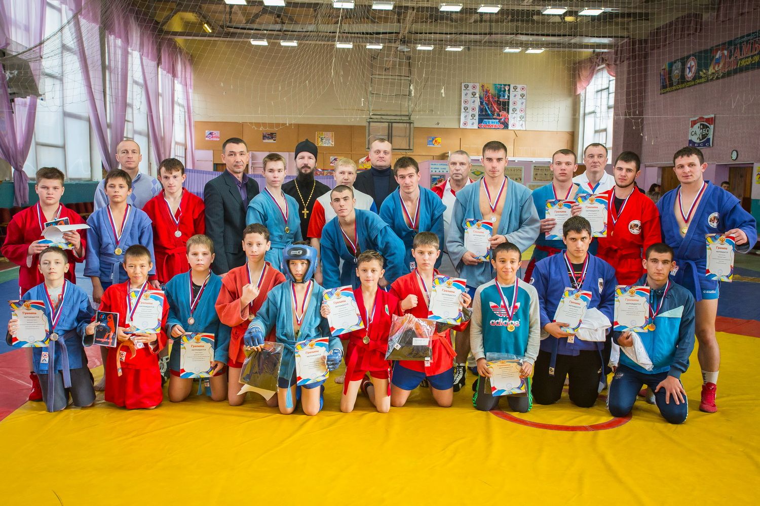 Городской турнир по боевому самбо состоялся 31 октября в Барнауле. Участники соревнований выступали в весовых категориях до 52 кг., до 62 кг., до 74 кг., до 90 кг., и свыше 100 кг. Мероприятие посетил председатель отдела по взаимодействию с казачеством иерей Владислав Лапердин.
