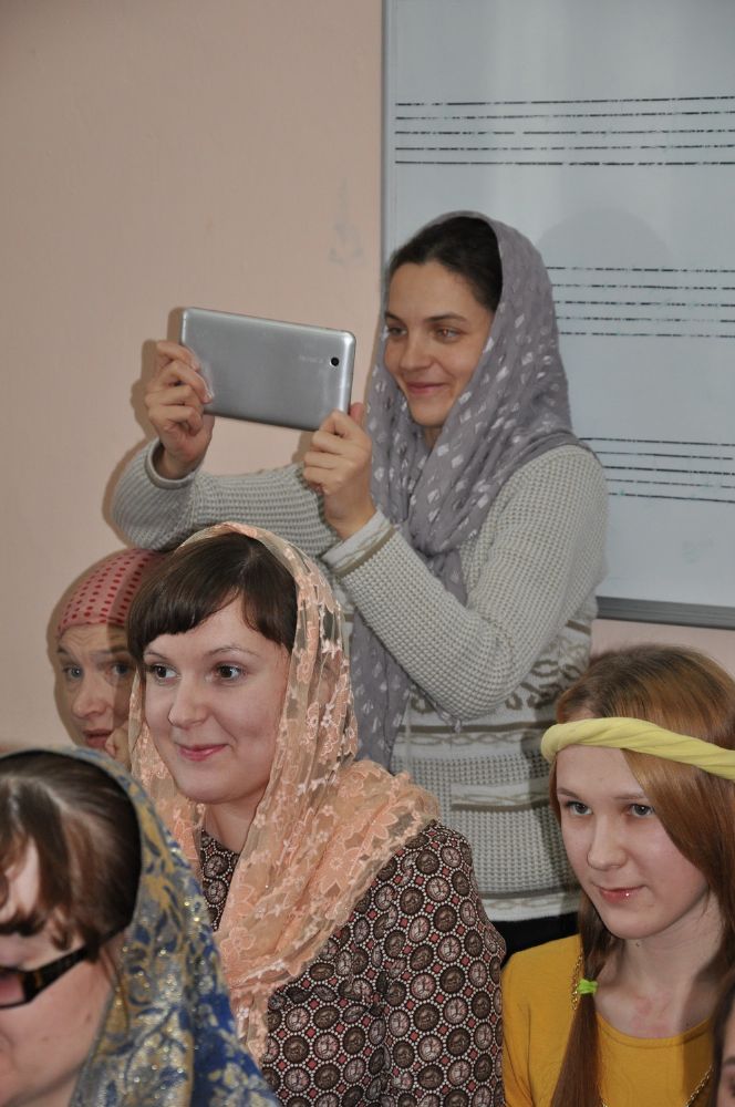 На показе присутствовал заведующий Регентской школы иерей Максим Спиненко, завуч Т.М. Лаевская, преподаватели и воспитанницы школы .