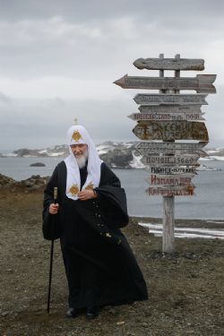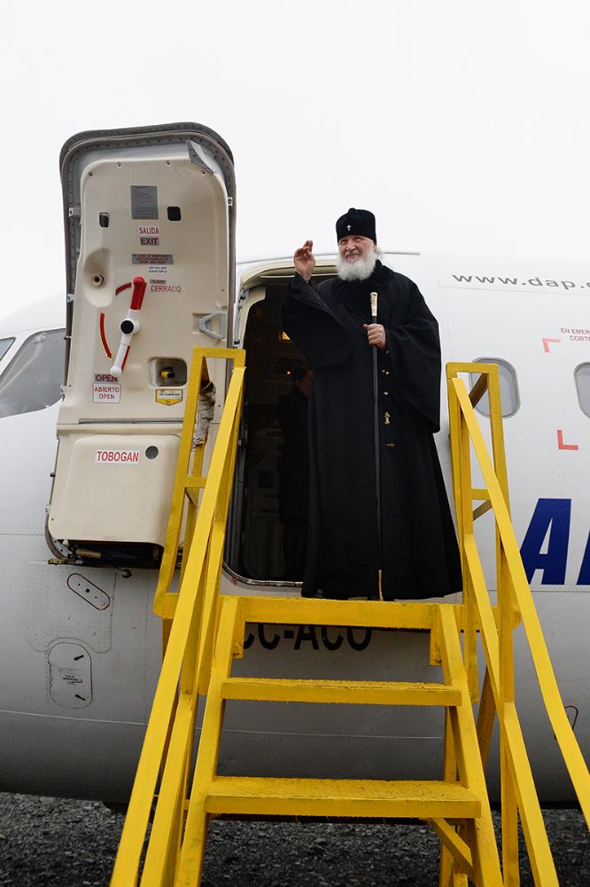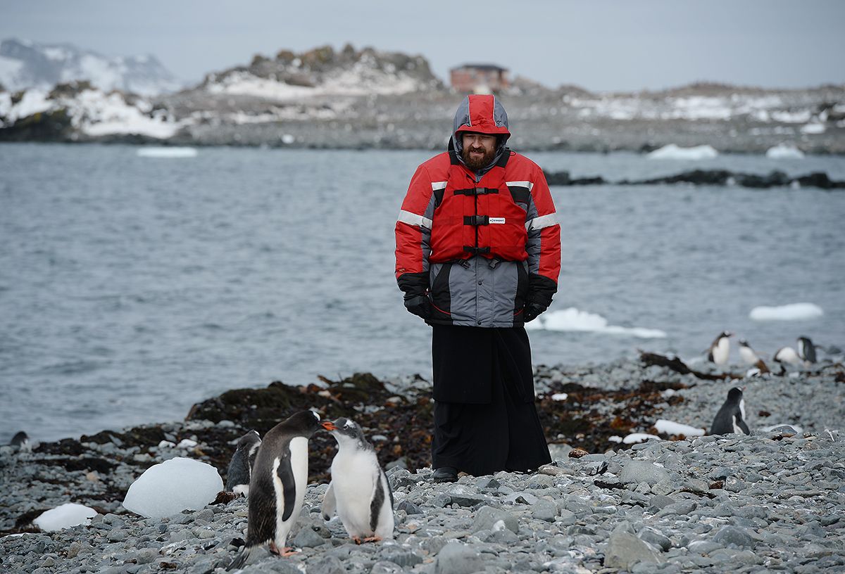 По прибытии на станцию «Беллинсгаузен» Святейший Патриарх Кирилл совершил водосвятный молебен в единственном постоянно действующем храме в Антарктиде — русском православном храме Святой Троицы. На молебне возносились молитвы о здравии всех трудящихся на станции. Затем была совершена лития о упокоении «душ усопших рабов Божиих, всех на месте сем почивших и во славу Отечества нашего потрудившихся», так как в ходе изучения Антарктики погибли 64 российских полярника.