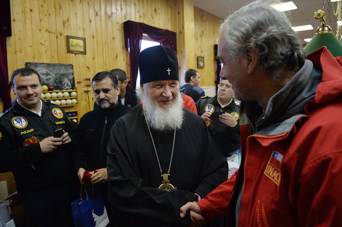 На станции «Беллинсгаузен» Патриарх Московский и всея Руси Кирилл пообщался с членами российской экспедиции и с сотрудниками других экспедиций, в том числе с полярниками с чилийской, китайской и других станций.
