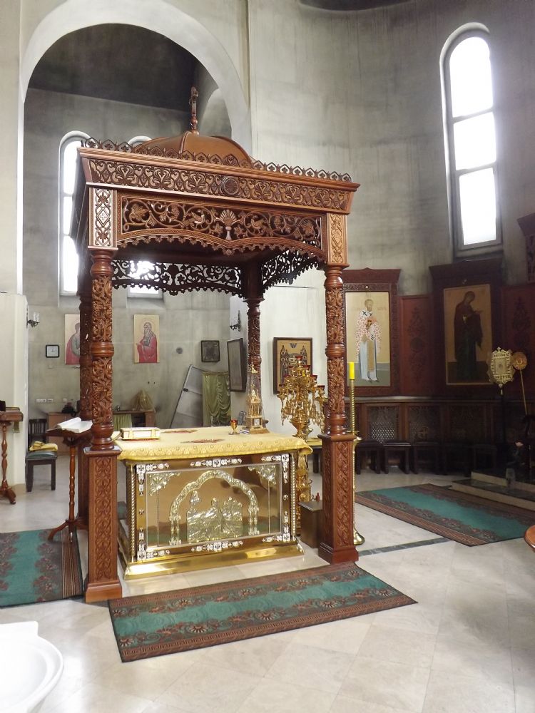 Как пояснил настоятель храма, протоиерей Георгий Крейдун, внутри сени из ее центра к престолу как бы опускается фигурка голубя, являющаяся символом Святого Духа. В древности иногда в эту фигурку клались для хранения запасные (то есть специально заготавливаемые для причащения больных и для других случаев) Дары.