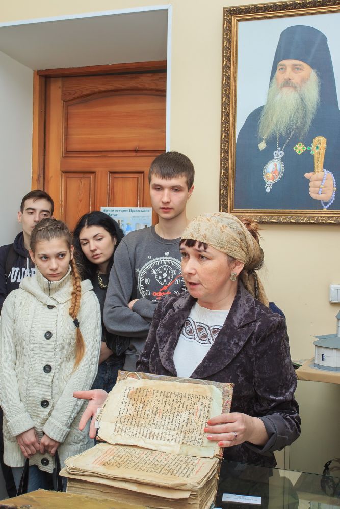 В рамках празднования Дня православной книги группа студентов 1-2 курсов отделения музееведения АлтГИК вместе с к.п.н. Л.А. Гриневич посетили Музей истории Православия на Алтае.