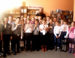 В рамках «Дня Православной книги» он рассказал ребятам о Библейских книгах, в частности о «Шестодневе» пророка Моисея. Собравшиеся проявили большой интерес к истории Сотворения мира и человека, задавали много вопросов. В завершение мерпориятия школьникам подарили небольшие иконы с молитвами для учащихся.