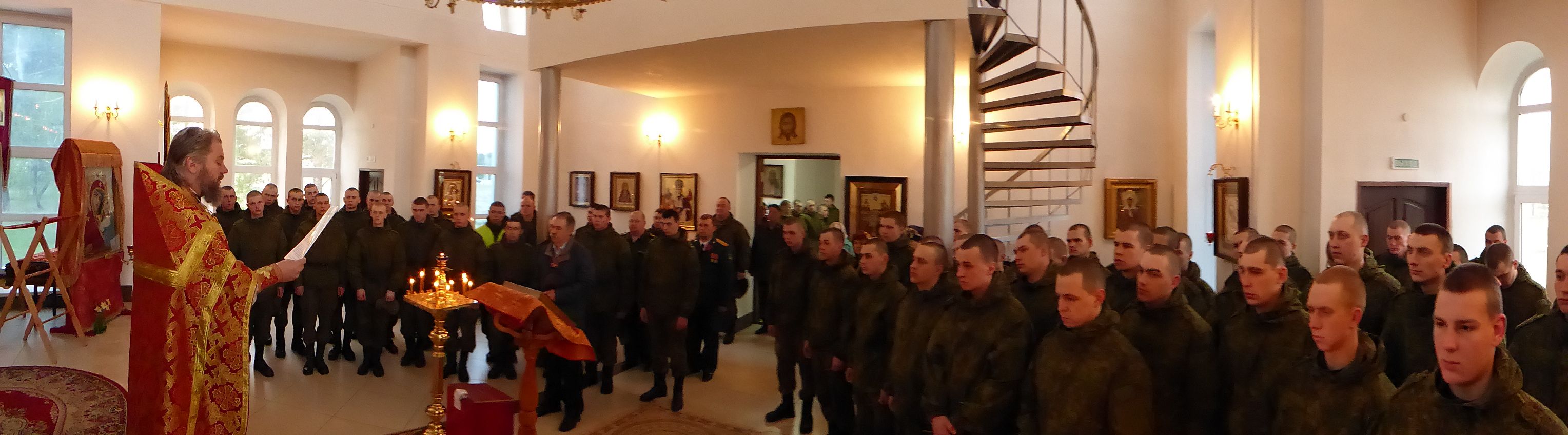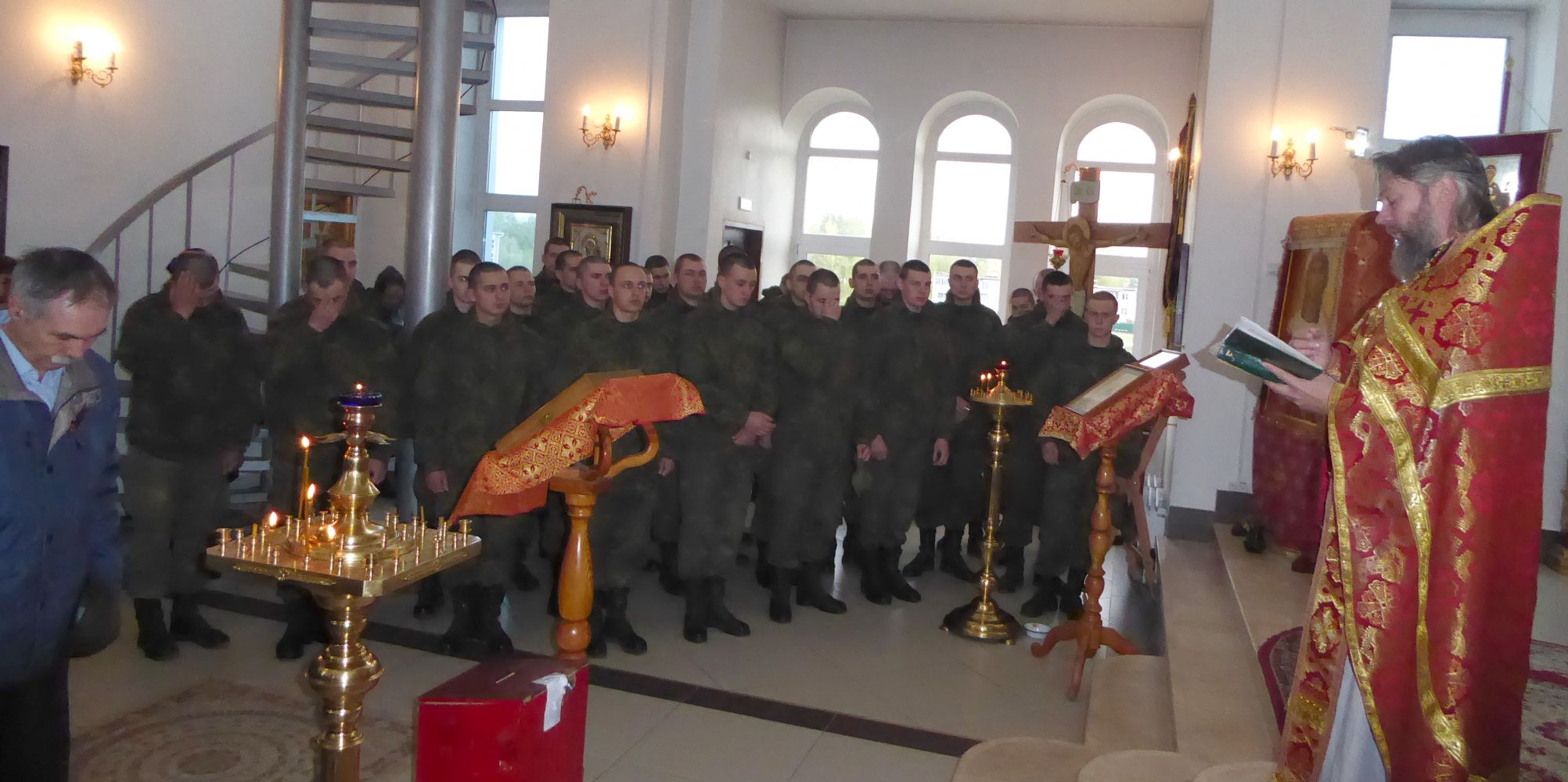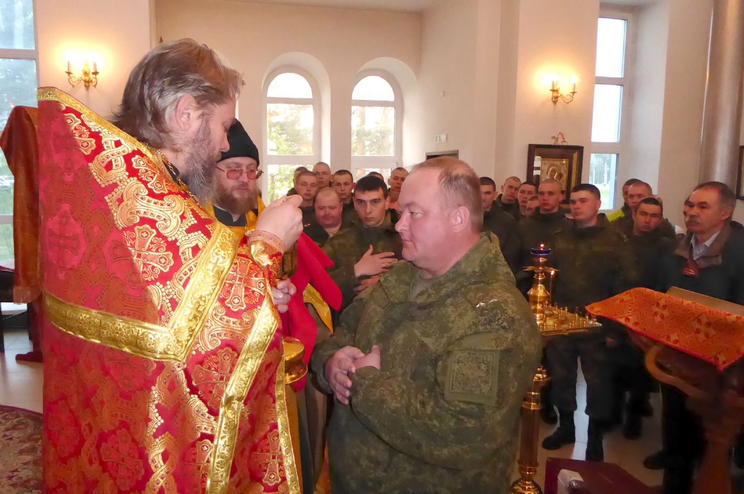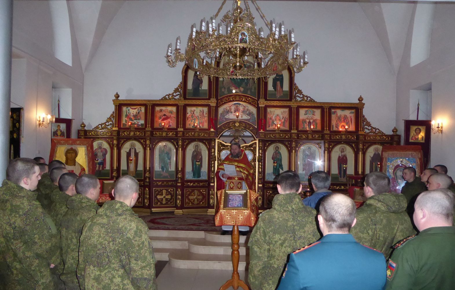 Накануне Литургии была проведена беседа духовного содержания, посвященная основам православной веры, и показан видеофильм «О семи смертных грехах». В ходе богослужения 5 молодых воинов приняли Таинство Святого Крещения и, став православными, впервые причастились Святых Христовых Таин.