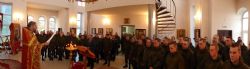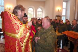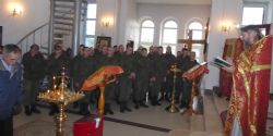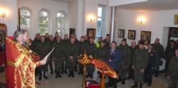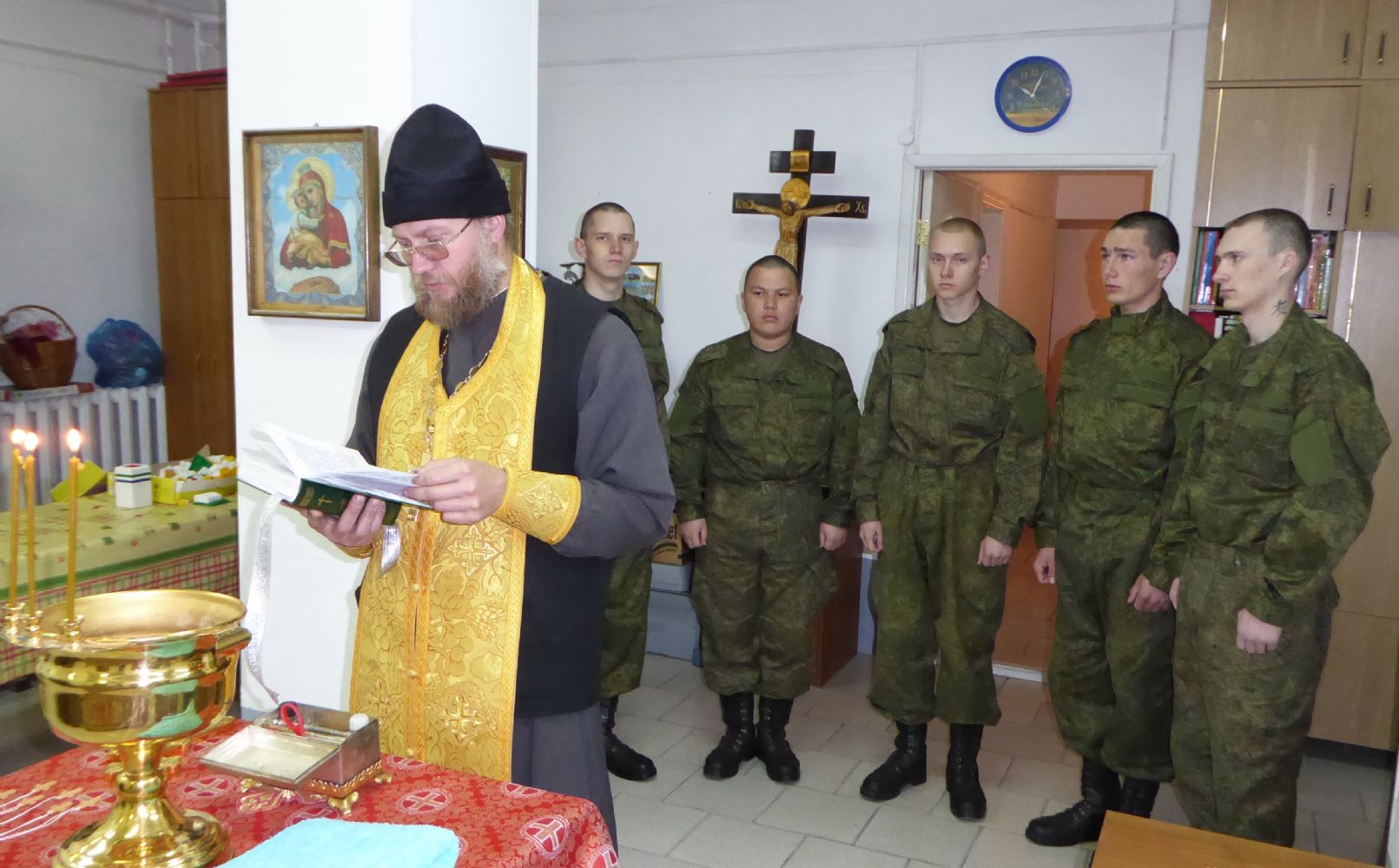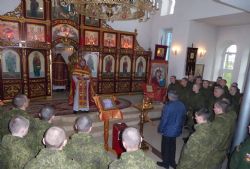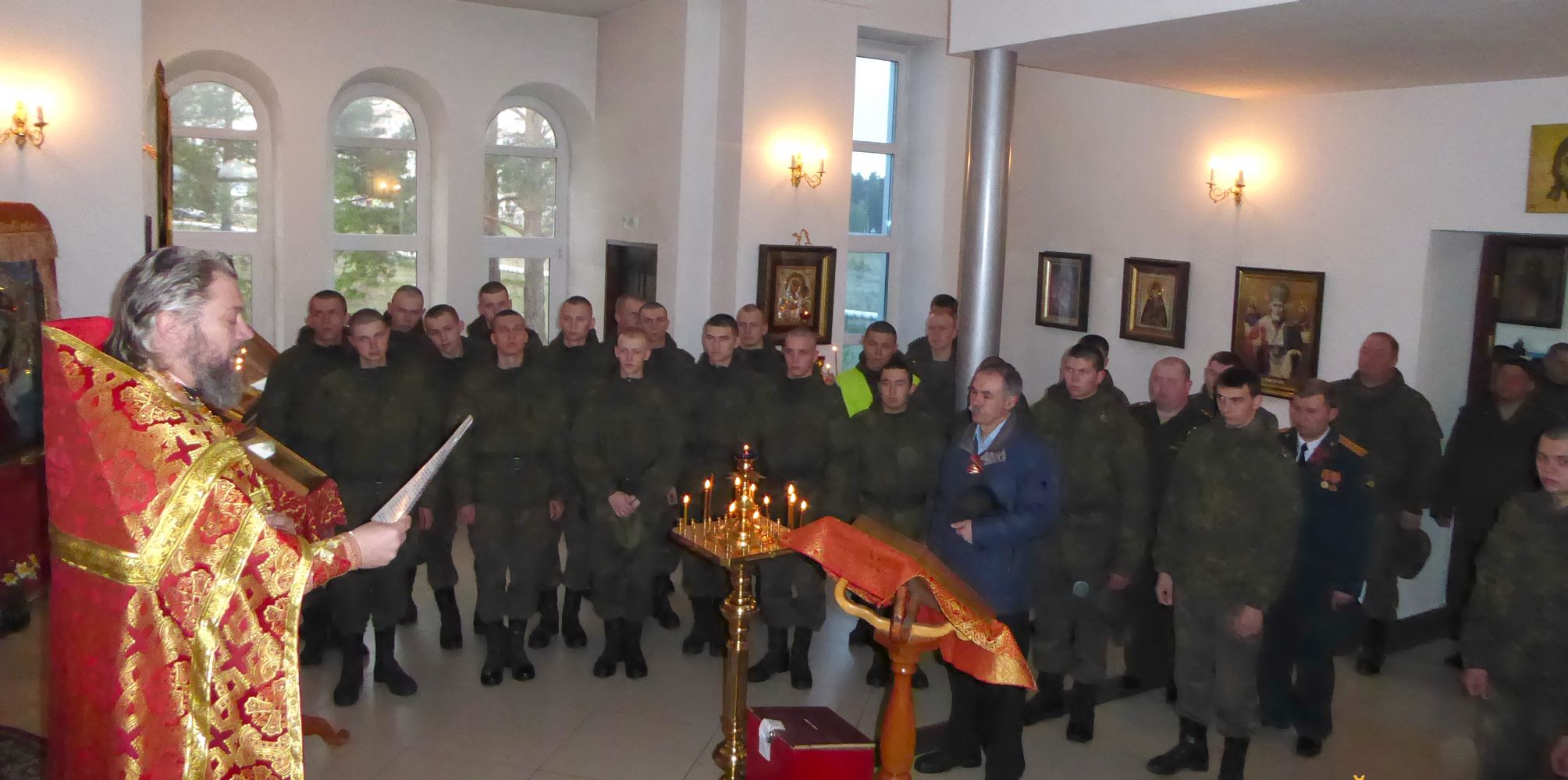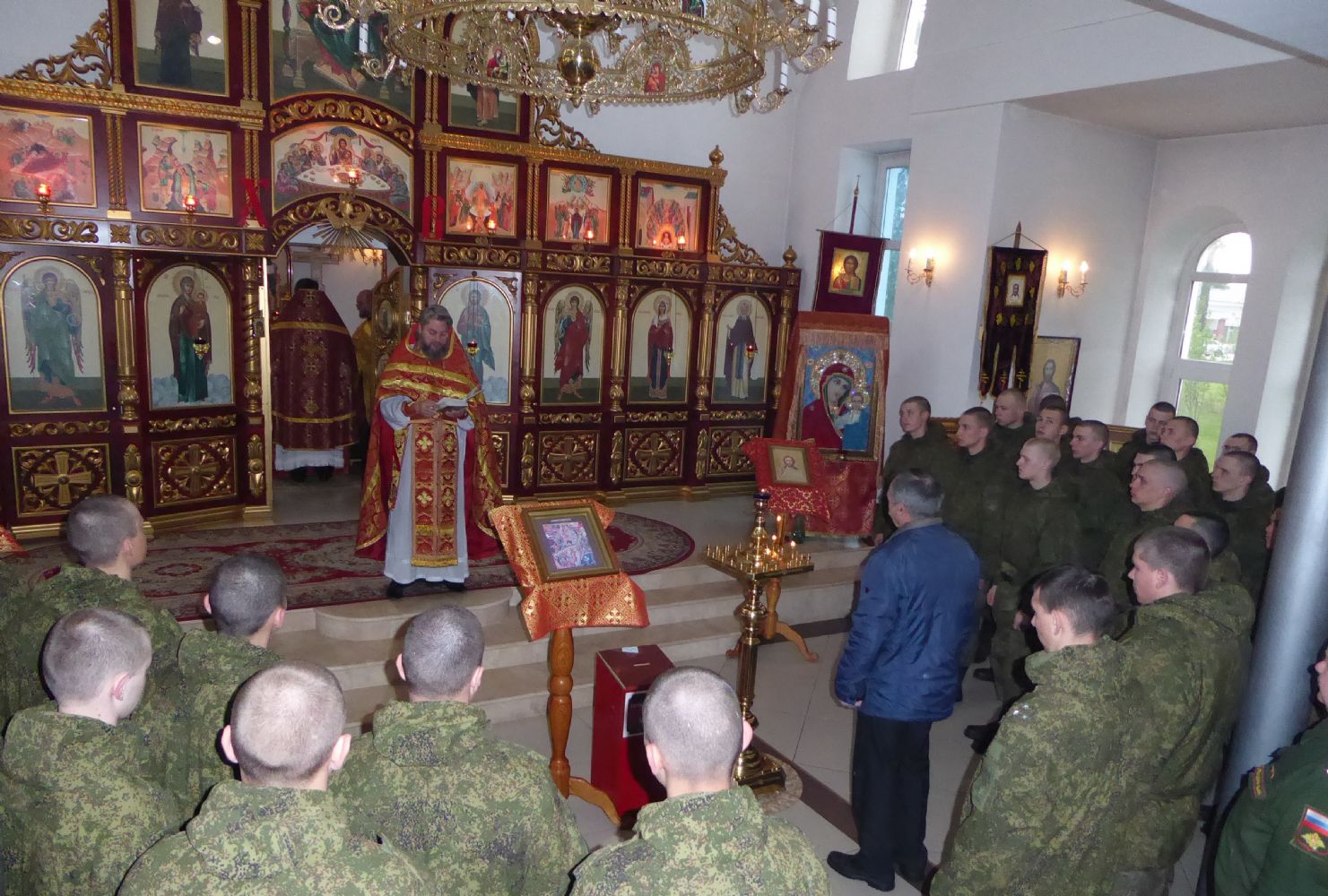 Накануне Литургии была проведена беседа духовного содержания, посвященная основам православной веры, и показан видеофильм «О семи смертных грехах». В ходе богослужения 5 молодых воинов приняли Таинство Святого Крещения и, став православными, впервые причастились Святых Христовых Таин.