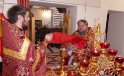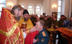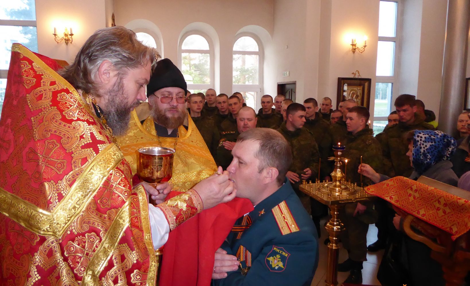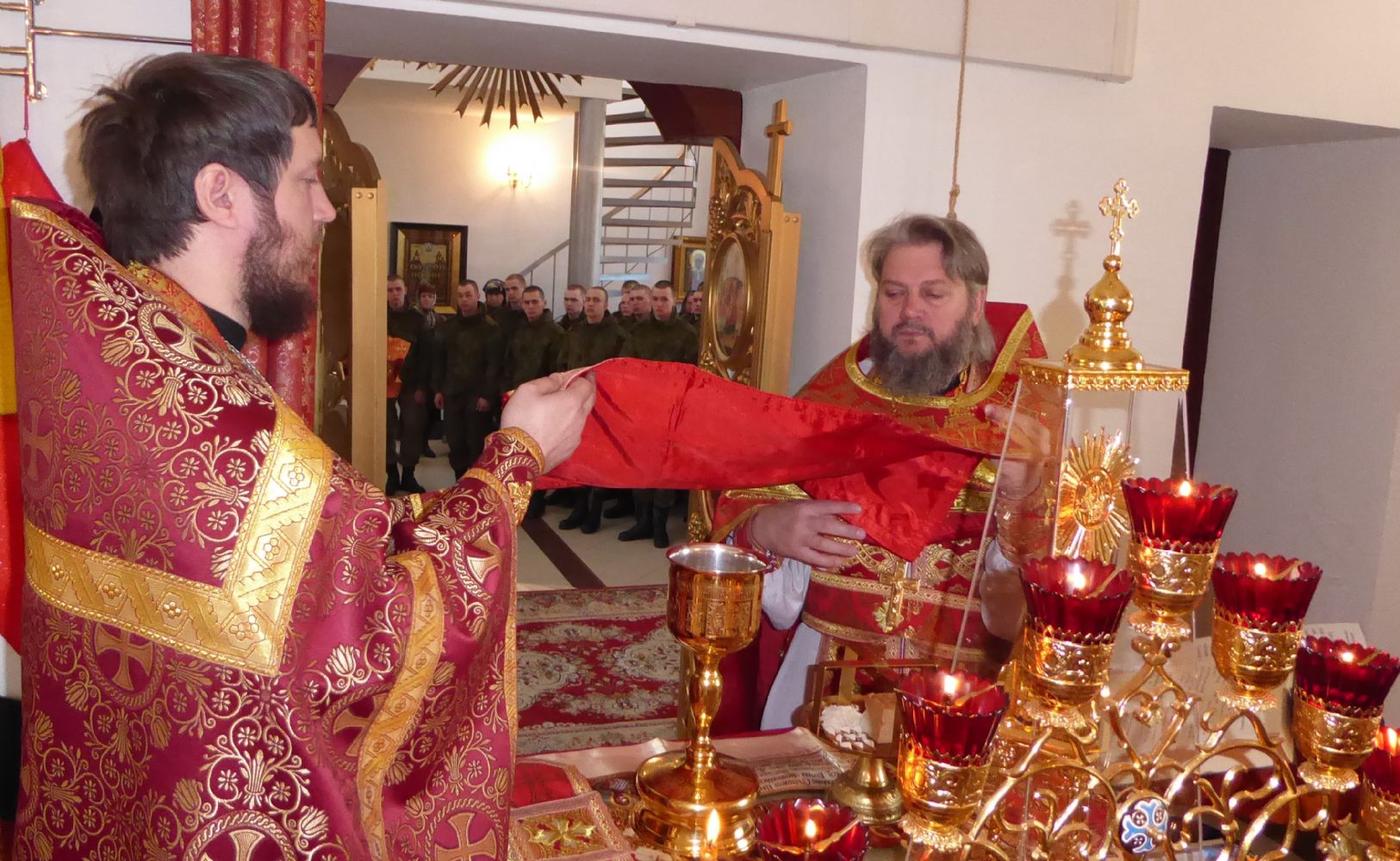 Богослужение возглавил помощник командира соединения по работе с верующими военнослужащими, иерей Сергий Тимофеев, ему сослужили клирики храма: иерей Георгий Богович и иерей Евгений Усов. В Таинстве Cвятого Причастия приняли участие более 55 воинов-ракетчиков, первыми причастились офицеры учебной роты.