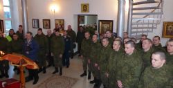 В завершение Божественной литургии иерей Сергий Тимофеев преподал всем священническое благословение и пожелал молодым защитникам Отечества, наследникам Великой Победы успехов в службе и на боевом дежурстве в воинских частях РВСН, в которые они в скором времени будут направлены.