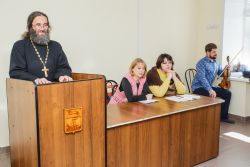 На мероприятии священник выступил с беседой на тему «Красота и небо», в которой рассказал о добре и зле, земном и небесном, музыке и слове. Потом скрипач Виктор Вареник сыграл присутствующим на скрипке, а штатный психолог роддома Л.З. Звягина провела тренинг-беседу, посвященную браку и семье.