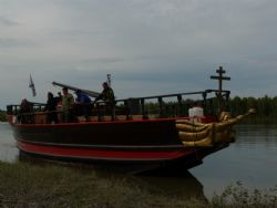 Молебен о путешествующих совершили священнослужители Алтайской митрополии вечером 26 июня на казачьем струге «Атаман Ермак – князь Сибирский». Возглавил его настоятель храма во имя Архистратига Михаила села Калманка Рубцовской епархии иерей Павел Балакирев в сослужении диакона Василия Петрова.