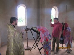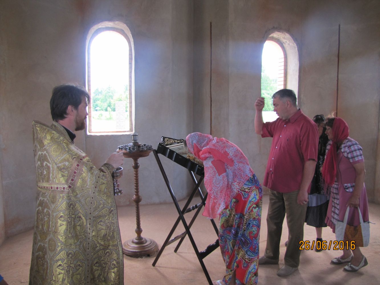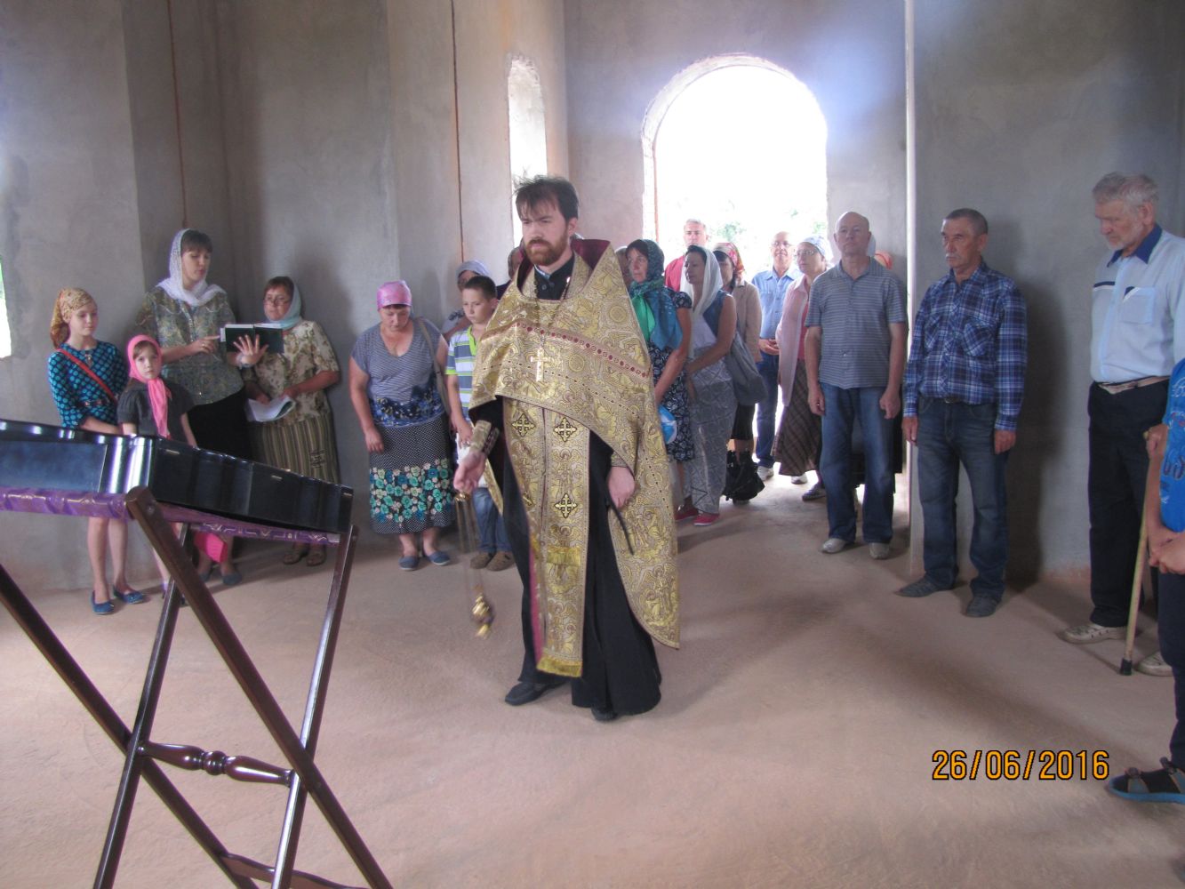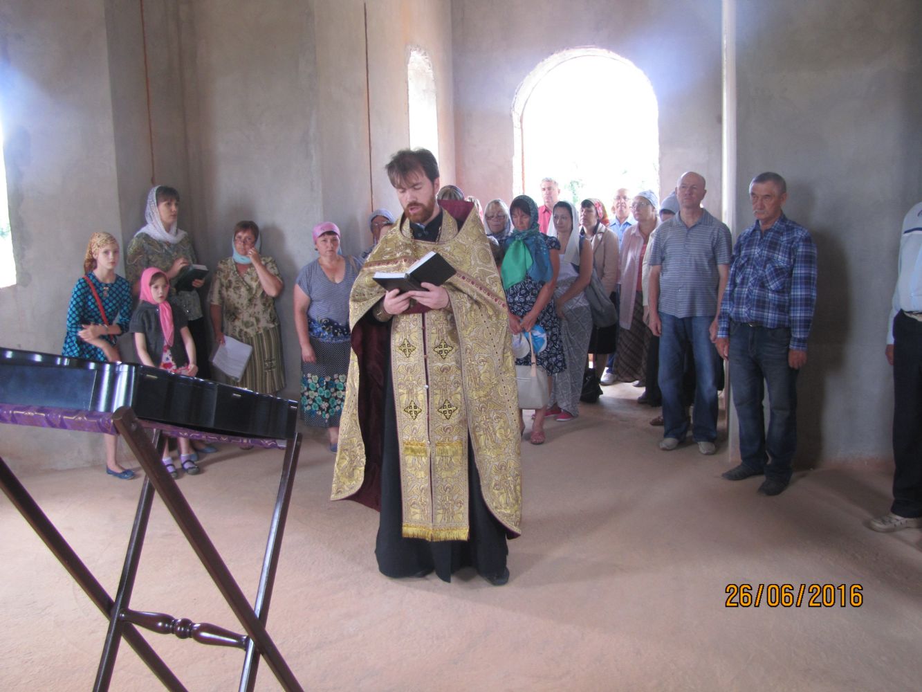 26 июня в строящемся храме во имя Всех святых, по благословению митрополита Барнаульского и Алтайского Сергия, был совершен молебен всем святым по случаю престольного праздника храма.