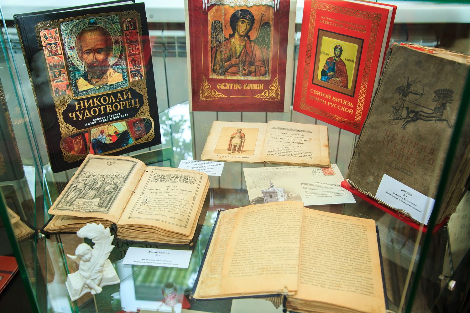 На основе этого фонда, а так же фондов библиотеки Знаменского женского монастыря была и развернута экспозиция. Были представлены православные книги 17- начала 20 века, которые заслуживают интерес не только как памятники книжной культуры, но и как исторические документы каждый со своей историей, историей своего владельца.