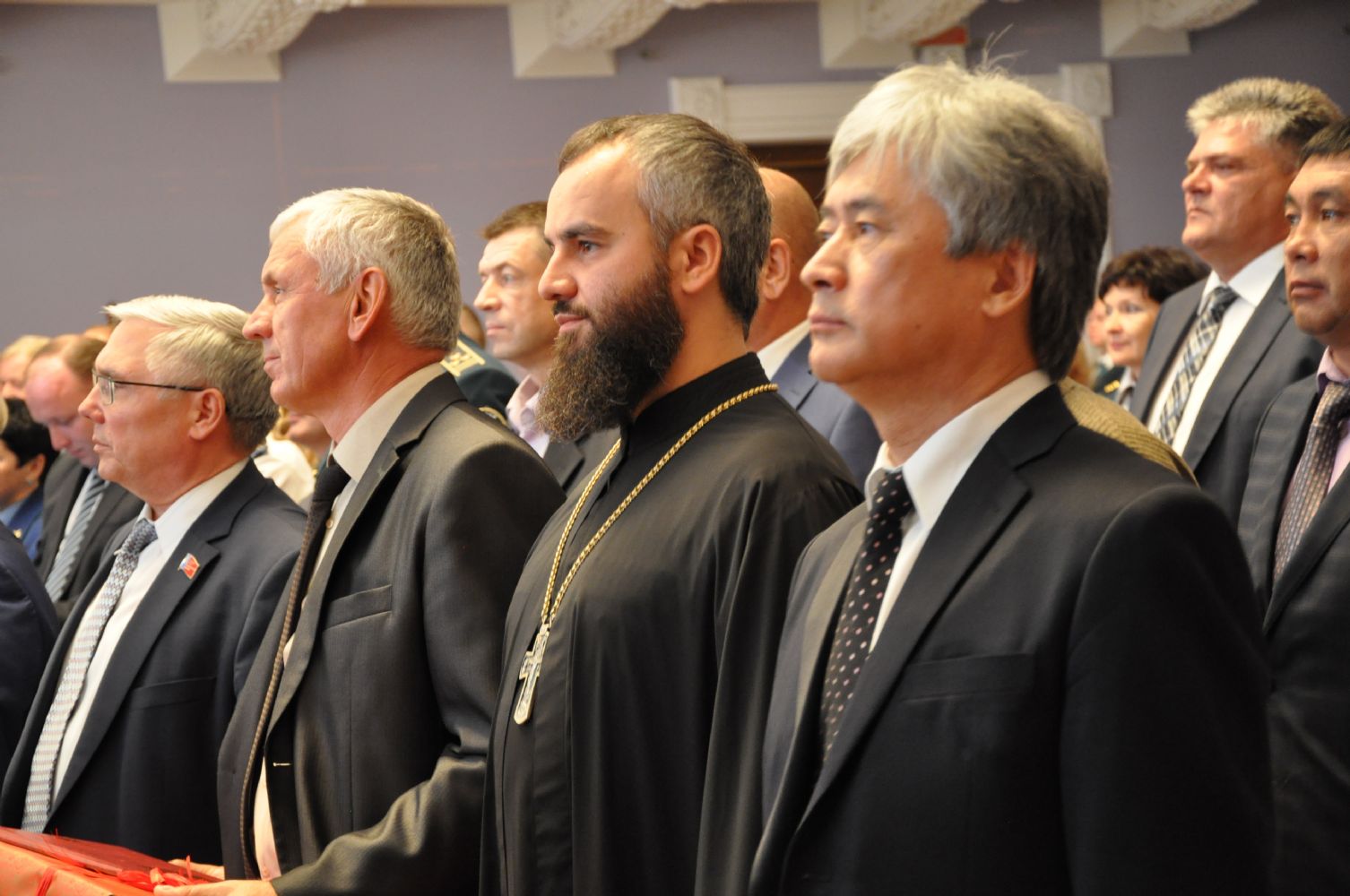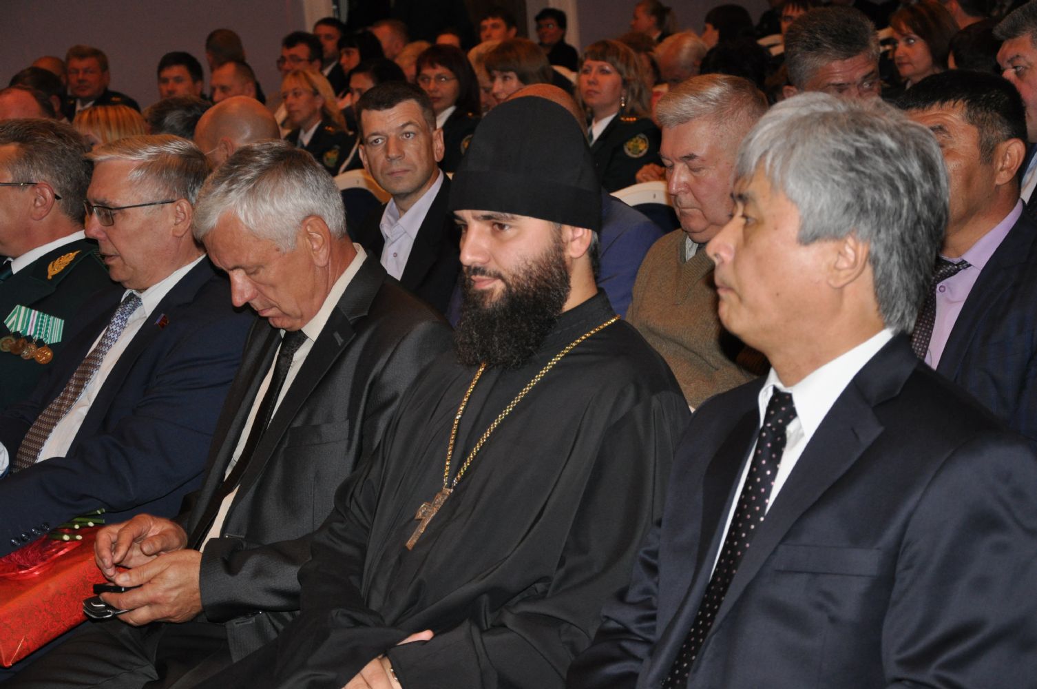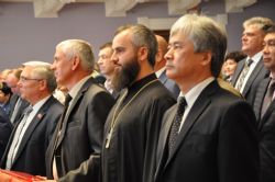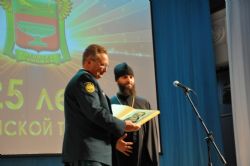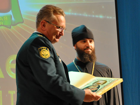По благословению митрополита Барнаульского и Алтайского Сергия торжественное мероприятие посетил секретарь епархии, настоятель Александро-Невского собора протоиерей Андрей Басов, который огласил поздравительный адрес главы Алтайской митрополии и вручил генерал-майору таможенной службы С.И. Беседину памятный подарок – икону святителя Макария Алтайского.