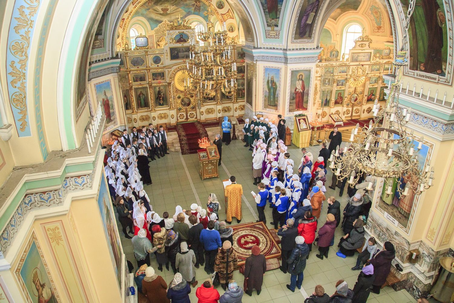 В Покровском кафедральном соборе г. Барнаула прошла всенощная и детская Литургия, посвященная празднику воскресного дня и иконе Божией Матери «Всех скорбящих Радость». Служба сопровождалась пением детских хоров.