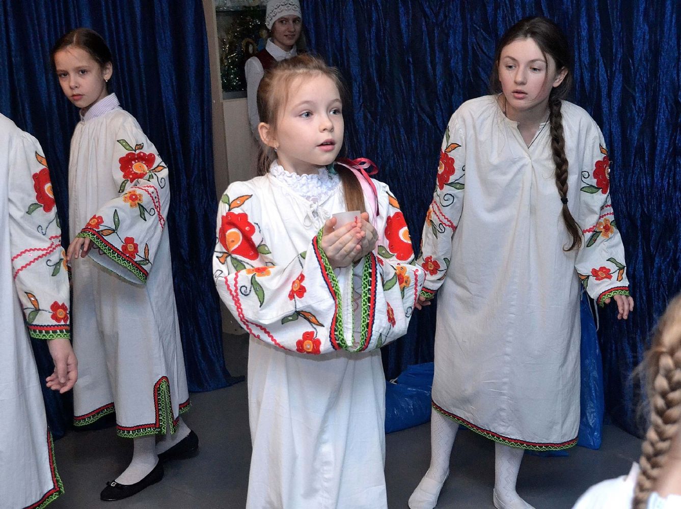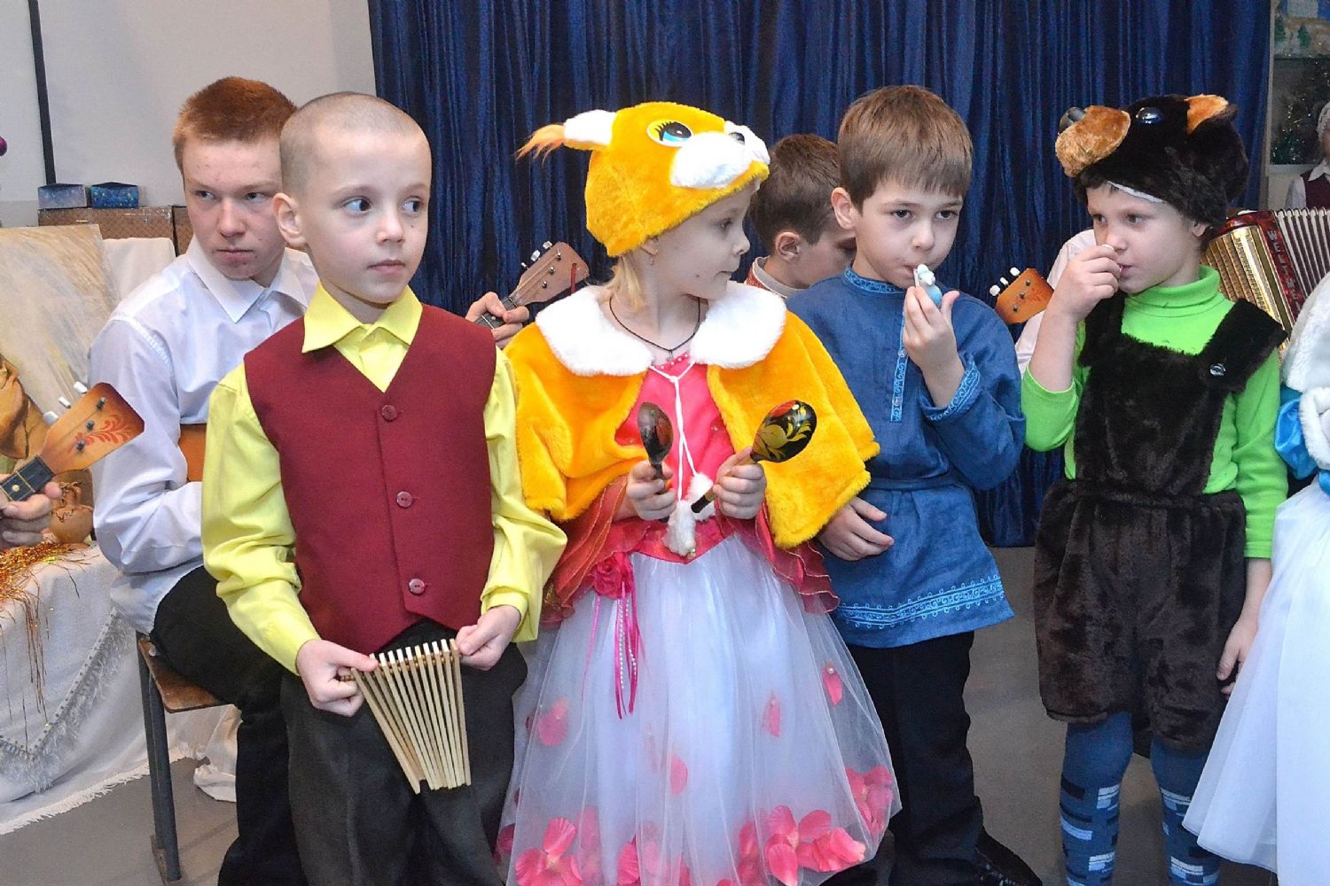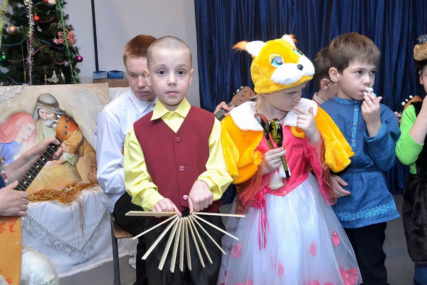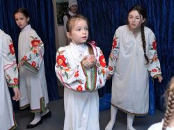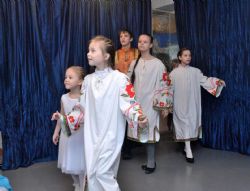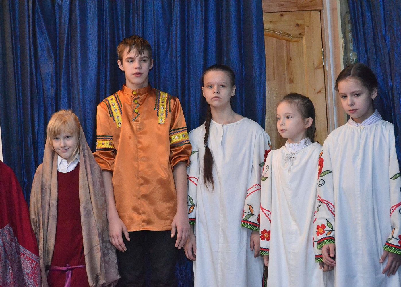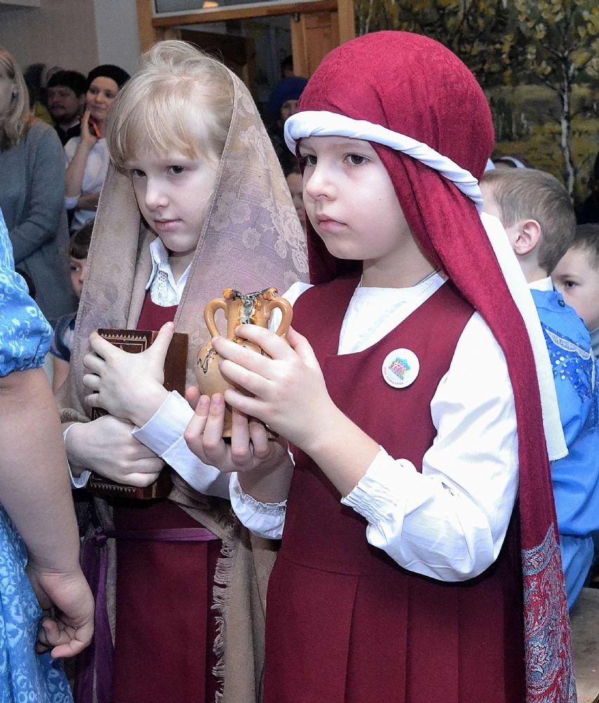 Праздничный концерт начался с театральной постановки "Дары", затем самые маленькие артисты исполнили песенку "Елочка" и выступили в составе фольклорного коллектива.