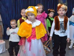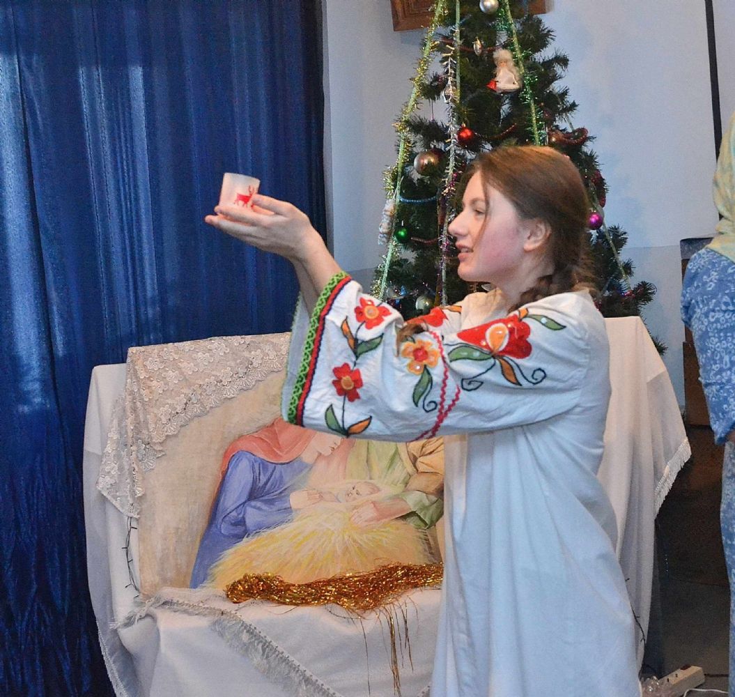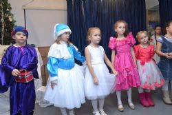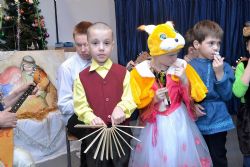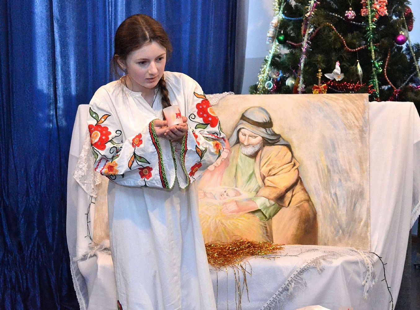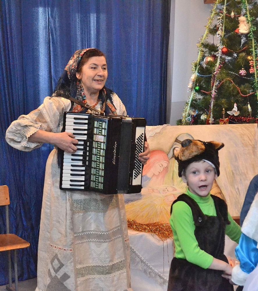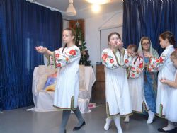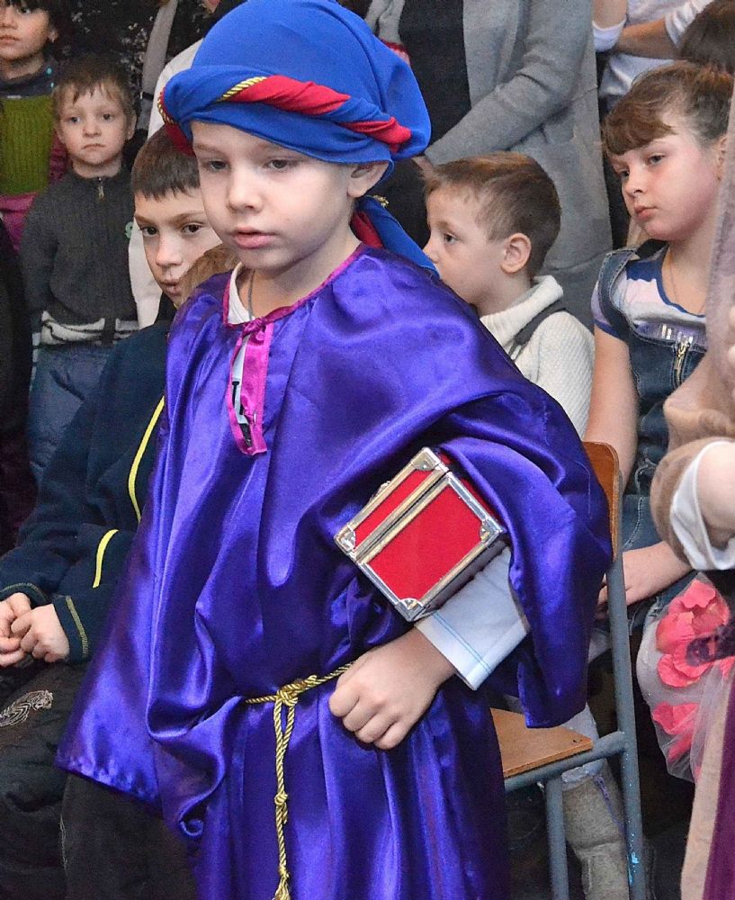 Праздничный концерт начался с театральной постановки "Дары", затем самые маленькие артисты исполнили песенку "Елочка" и выступили в составе фольклорного коллектива.