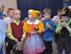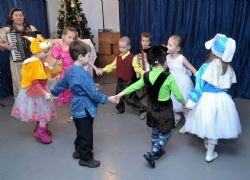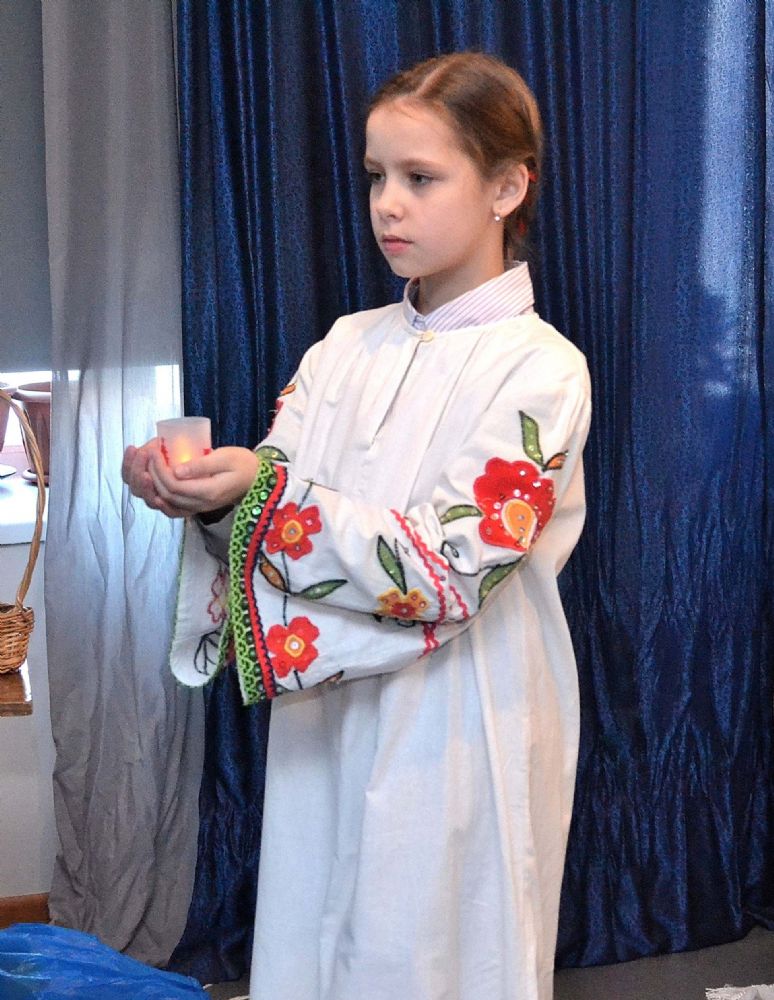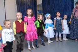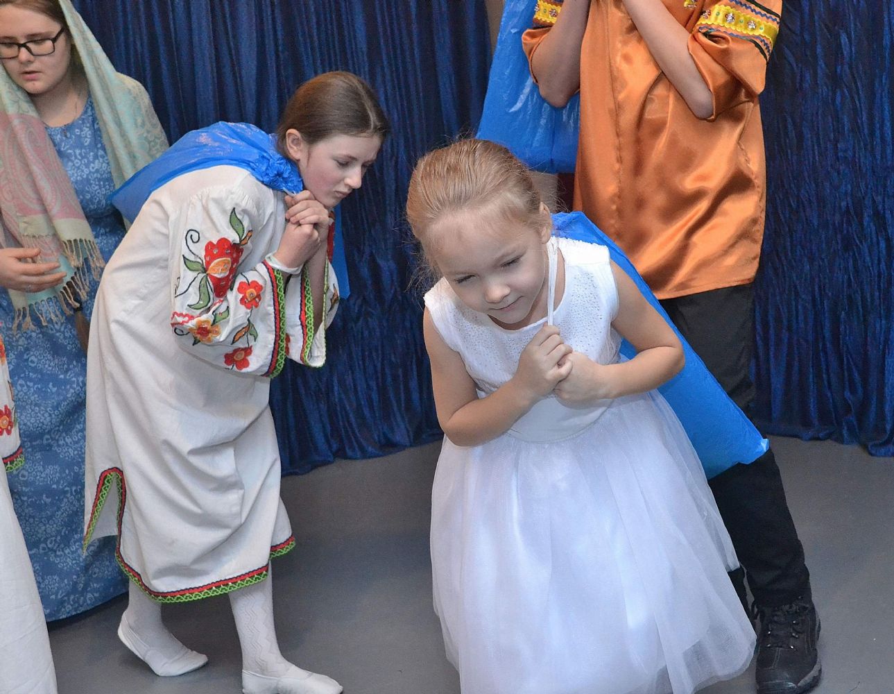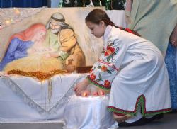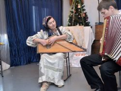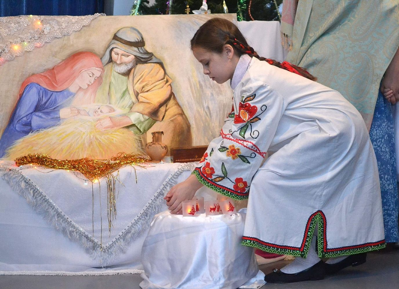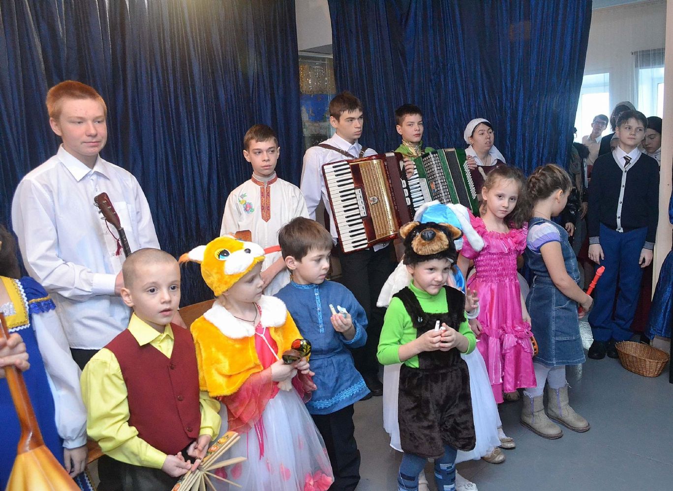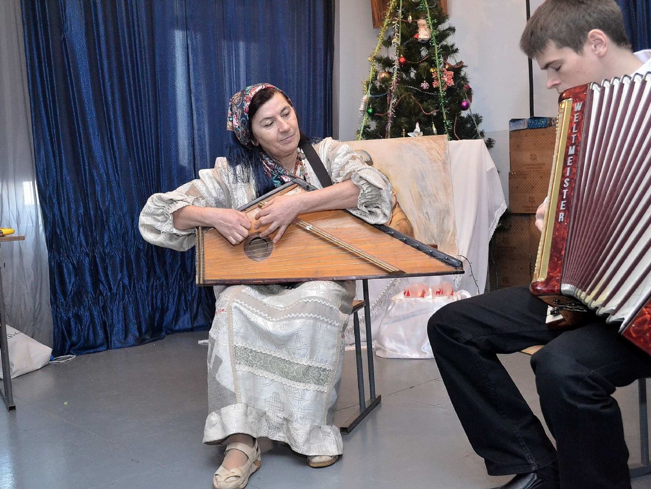 Праздничный концерт начался с театральной постановки "Дары", затем самые маленькие артисты исполнили песенку "Елочка" и выступили в составе фольклорного коллектива.