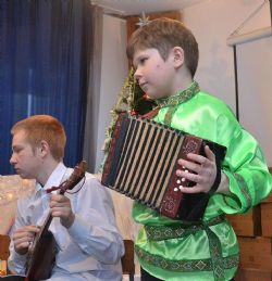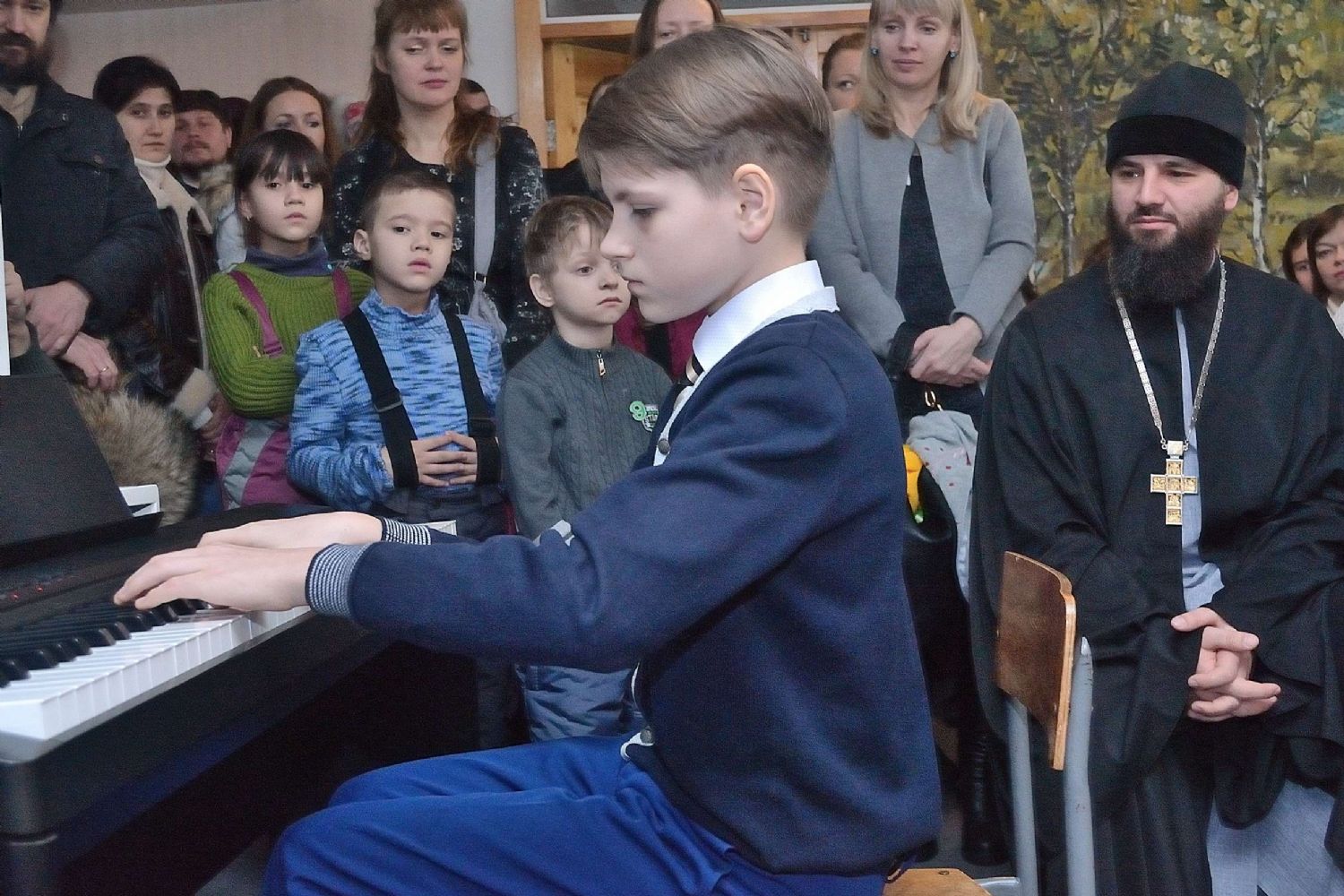 В концерте принимали участие ребята из юношеского певческого коллектива и детского хора воскресной школы Александро-Невского собора. Они исполнили рождественские песни и колядки. В праздничную программу были включены и классические произведения, которые исполнили Денис Пашков и Данил Епифановский.