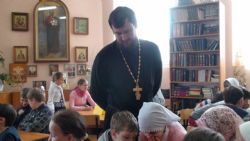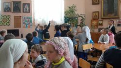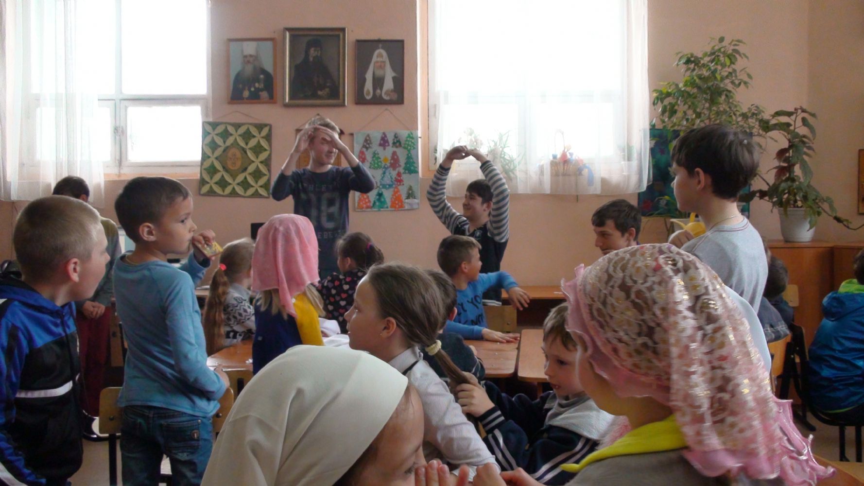 Разделившись на несколько команд, дети попробовали пройти три этапа конкурсных заданий. На первом этапе нужно было ответить на 25 вопросов викторины, на втором — решить примеры, как их решали в старину с помощью букв, на третьем — проявить смекалку, вспомнить как называется церковная утварь и объяснить значение богослужебных терминов с помощью пантомимы. Второе и третье задание были творческими.