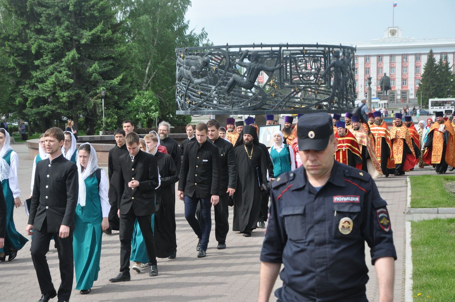 После богослужения, в рамках праздничных мероприятий, посвященных Дню славянской письменности и культуры, от храма до площади Ветеранов по главному проспекту краевой столицы прошел крестный ход. Участие в нем приняли духовенство и миряне Алтайской митрополии.