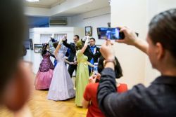 Они выступили в праздничной программе в галерее «Универсум», где сейчас проходит выставка алтайского художника А. Кондакова, представив зрителям старинные танцы – вальсы, менуэт и па-де-грас. Основатель галереи «Универсум» доктор искусствоведения, профессор Тамара Михайловна Степанская провела для всех желающих экскурсию по выставке костюма и символике орнамента. В своем рассказе она отметила, как важно сегодня приобщать молодежь к русской дворянской культуре, в том числе танцевальной.