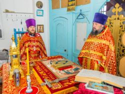 В день престольного праздника ему сослужил настоятель храма иерей Алексий Шипилов. За богослужением молились прихожане и местные казаки.