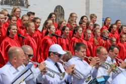 В единую общероссийскую программу для хоровых концертов вошли действительно всенародные хиты советского времени. Сводный детский хор в сопровождении Барнаульского духового оркестра исполнил «Дорогою добра», «Вместе весело шагать», «Край, в котором ты живешь» и другие песни. А затем на импровизированную сцену вышли симфонический оркестр филармонии и взрослые хоры. В исполнении хора и солистов прозвучали «Течет река Волга», «Калинка» и «Катюша», «Притяжение Земли». Участники сводного хора барнаульских храмов неожиданно исполнили «Подмосковные вечера» как духовное песнопение – без сопровождения оркестра. Завершился праздник хором «Славься» из оперы Михаила Глинки «Иван Сусанин» и колокольным перезвоном, под который в небо выпустили белых голубей.