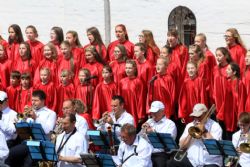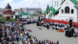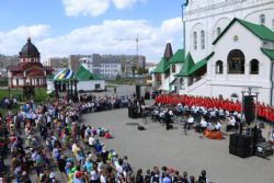 День славянской письменности в Барнауле отметили большим хоровым концертом. Праздник состоялся на площади перед храмом Иоанна Богослова и собрал многочисленных жителей окрестных районов и школьников.