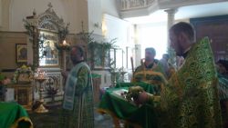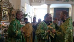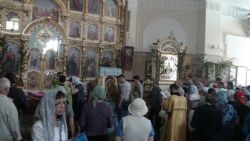 Перед святыней совершили молебен ключарь храма иерей Евгений Капп, иерей Владимир Стуров и иерей Симеон Шашков.