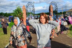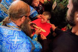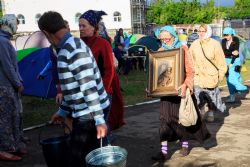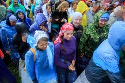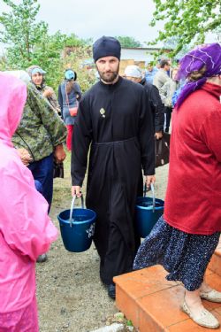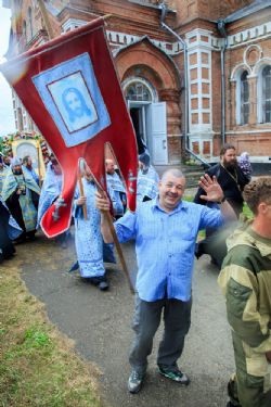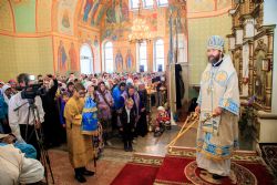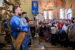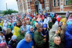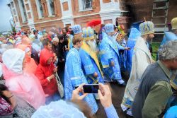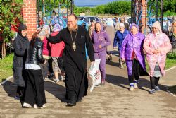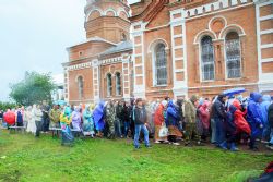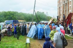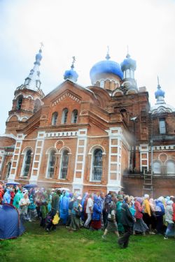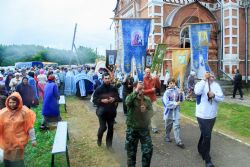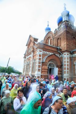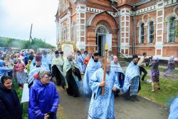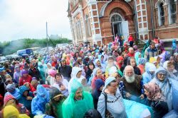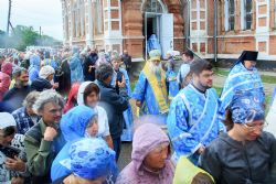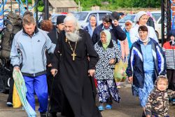 Несмотря на ненастную погоду, после службы состоялся крестный ход вокруг храма.
