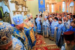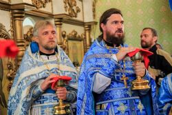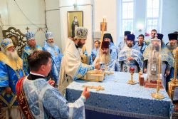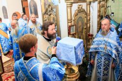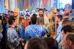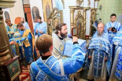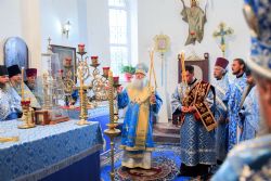 Божественную литургию возглавил митрополит Барнаульский и Алтайский Сергий. Ему сослужили четыре епископа: Рубцовский и Алейский Роман, Горноалтайский и Чемальский Каллистрат, Россошанский и Острогожский Андрей и Белокурихинский и Бийский Серапион. Им сослужили штатные клирики Алтайской митрополии.