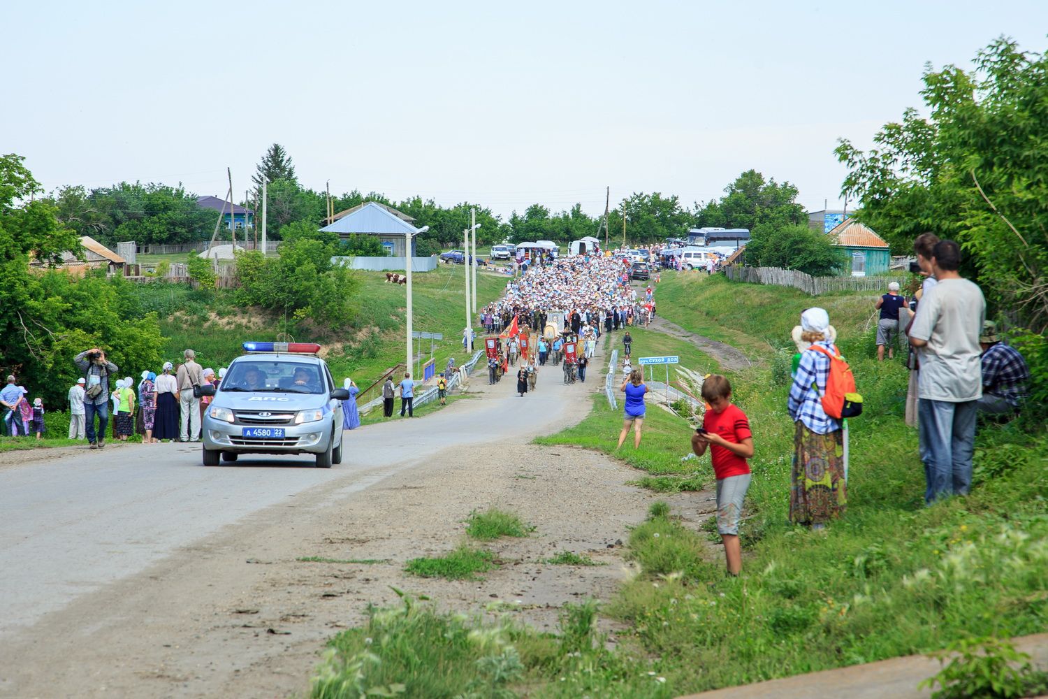 Паломников встречали многочисленные жители села, гости, приехавшие из разных уголков Алтайского края и регионов России и местное духовенство.