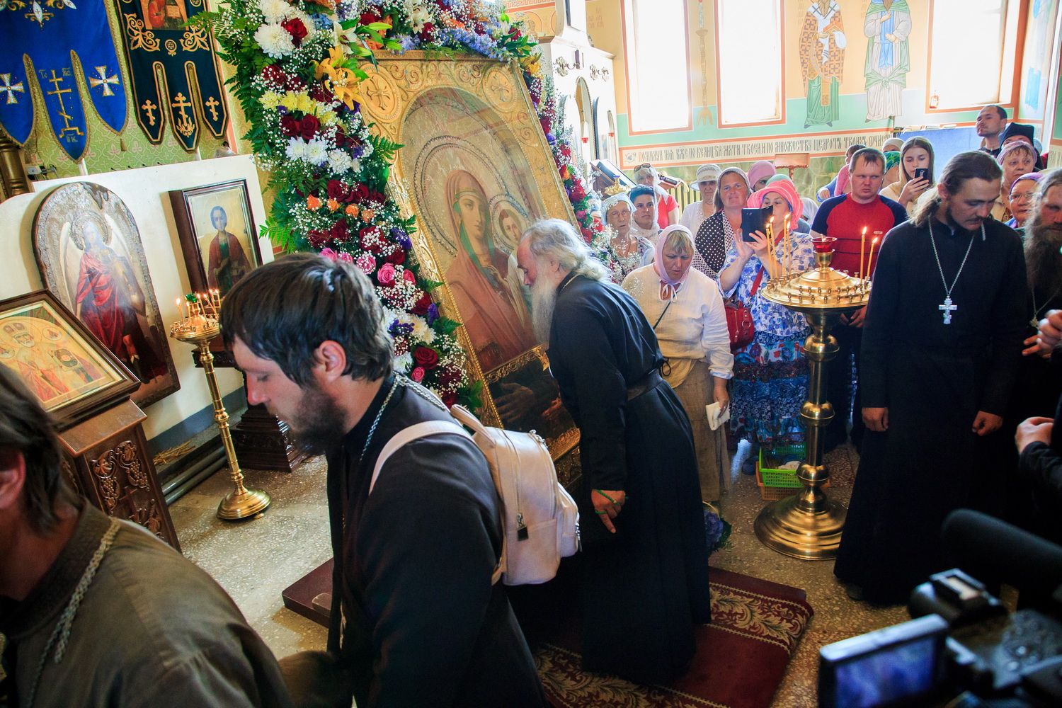 Сразу же в храме тысячи верующих приложились к чудотворному образу Богоматери, а священник окропил людей святой водой.