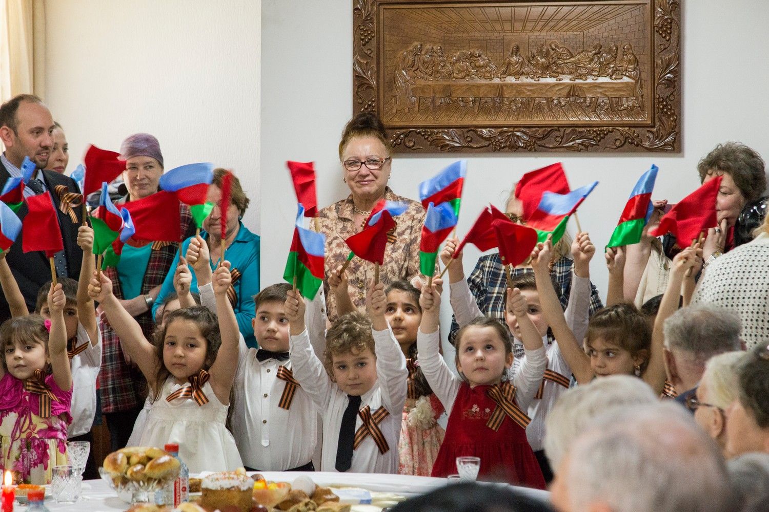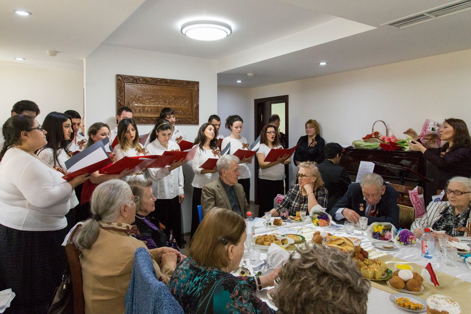 Собравшихся ветеранов поздравили воспитанники одного из детских садов г. Баку, прочитавшие стихотворения на тему Дня Победы. Также во время проведения мероприятия прозвучали вокальные и инструментальные произведения в исполнении артистов Театра музыкальной комедии, учащихся Бакинской Музыкальной Академии. Песни военных лет прозвучали в исполнении хора Михайло-Архангельского храма г. Баку п/у Эфендиевой К.