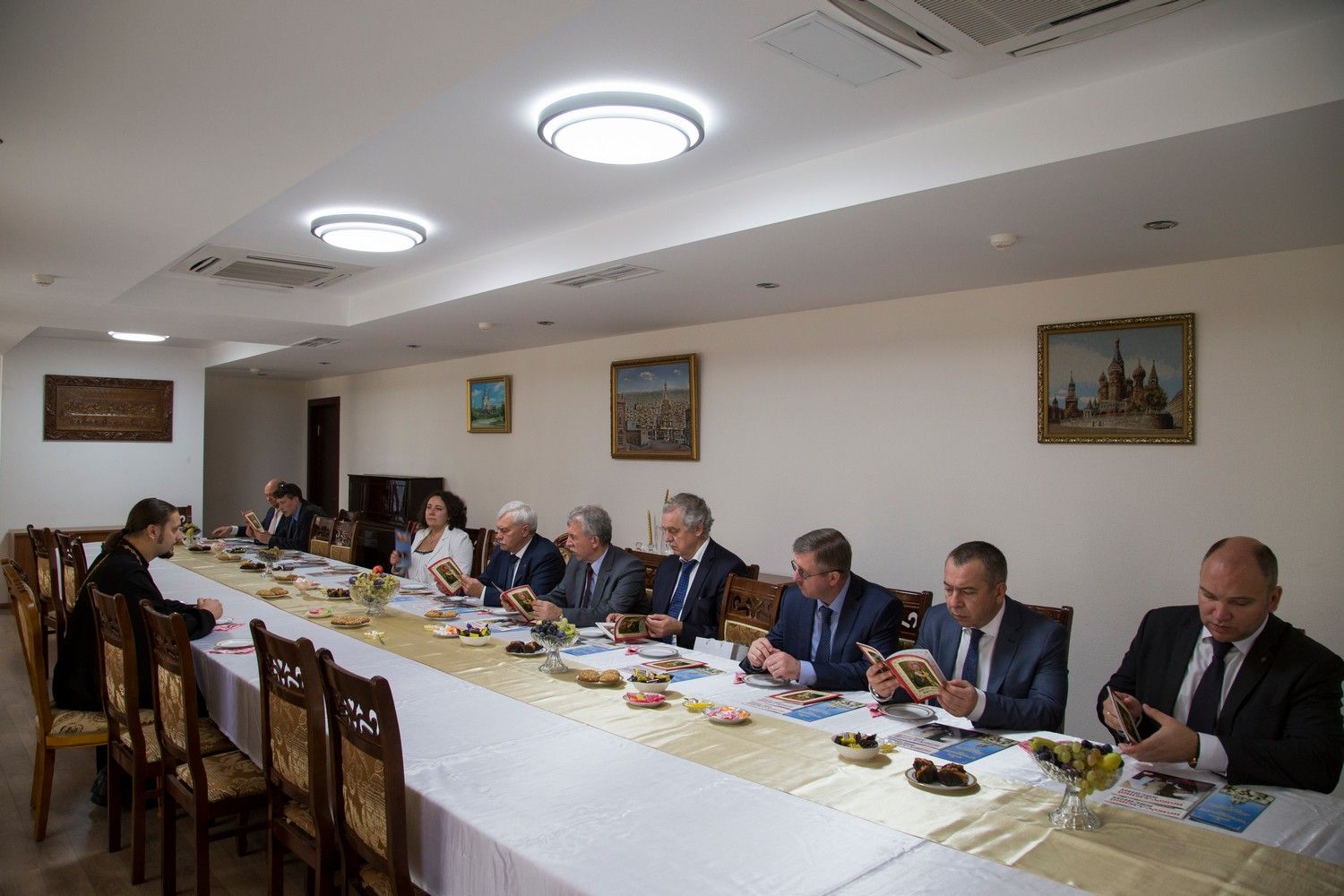 По благословению Высокопреосвященного архиепископа Александра делегацию принял секретарь Бакинского Епархиального Управления протоиерей Мефодий Эфендиев.