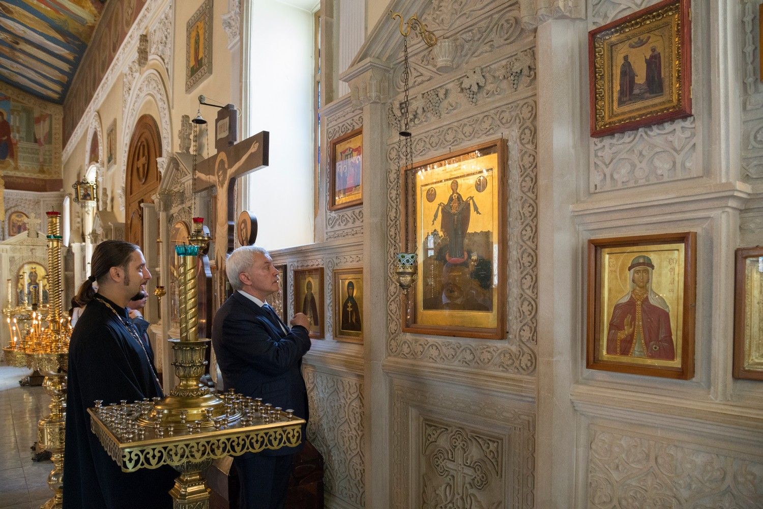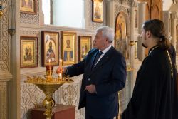 Во время встречи гостю и сопровождавшим его лицам был показан кафедральный собор Свв. Жен-Мироносиц г. Баку и Православный религиозно-культурный центр.