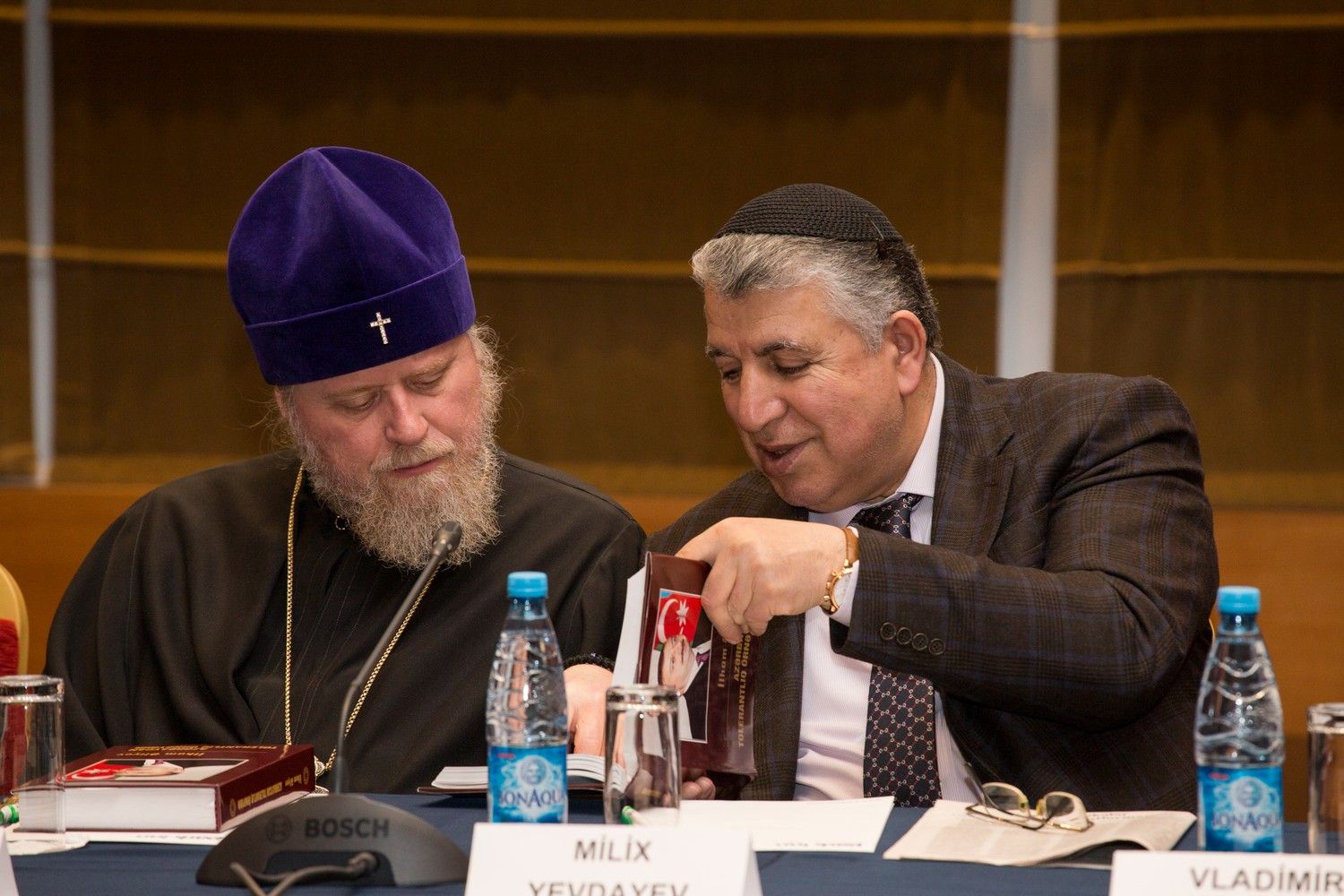 Архиепископ Александр, обращаясь к участникам мероприятия, отметил, что выход в свет книги «Ильхам Алиев. Азербайджан – модель толерантности» - своевременное явление. Книга, состоящая из документов, обращений и поздравлений, адресованных традиционным религиозным общинам, будет хорошим подспорьем специалистам, изучающим феномен азербайджанского мультикультурализма. Также Владыка Александр выразил надежду, что эта книга в скором будущем будет переведена и на русский язык.