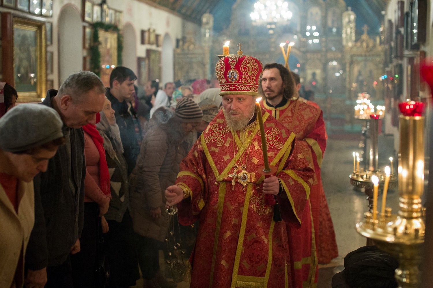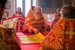 По окончании всенощного бдения архиепископ Александр обратился к молящимся с архипастырским словом и затем удостоил епархиальной награды – серебряной медали святого апостола Варфоломея – секретаря Бакинского Епархиального Управления, настоятеля храма святого Архангела Михаила г. Баку протоиерея Мефодия Эфендиева.