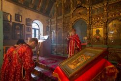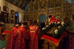 По окончании Литургии был совершен Крестный ход и возглашены уставные многолетия по случаю престольного храмового праздника.