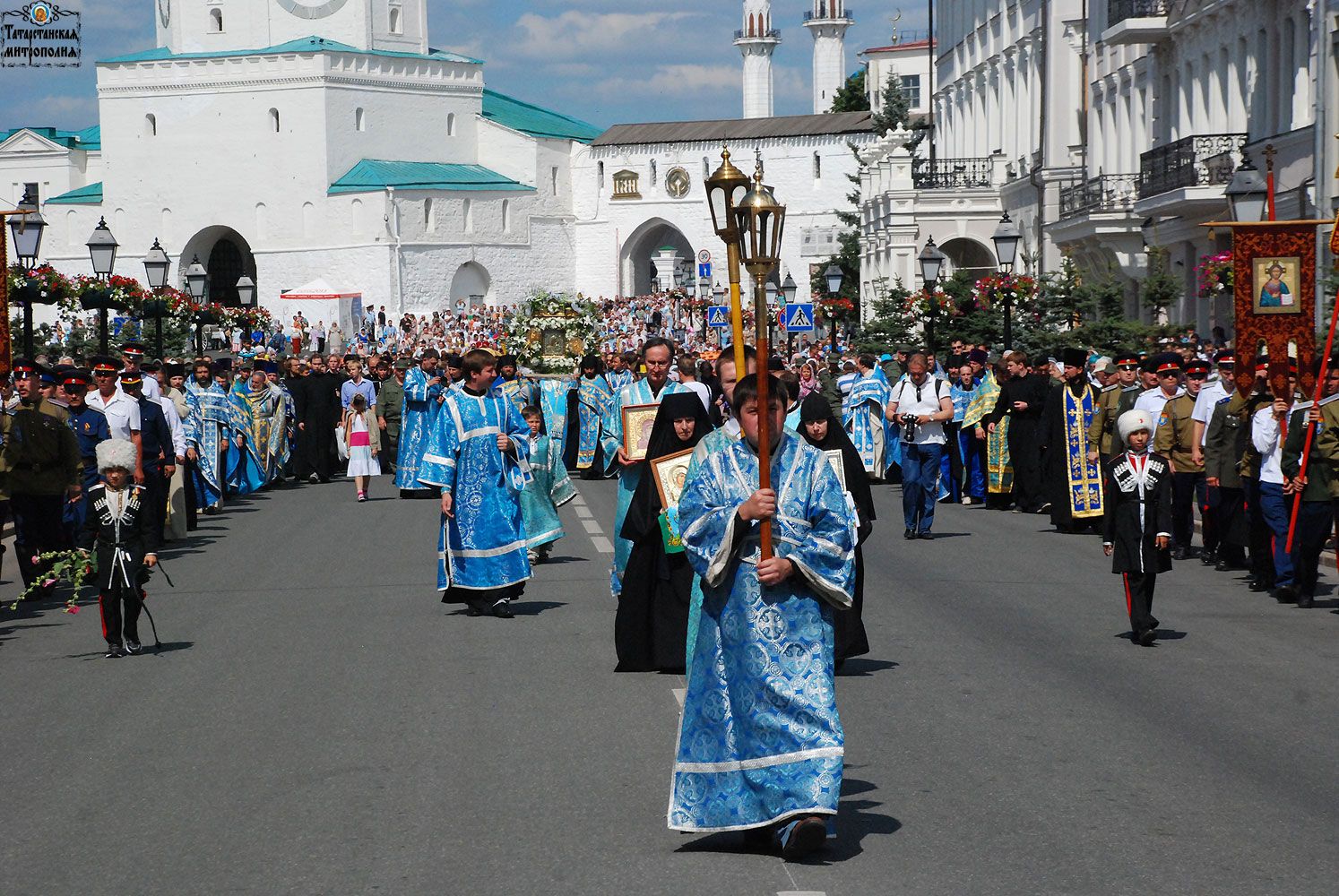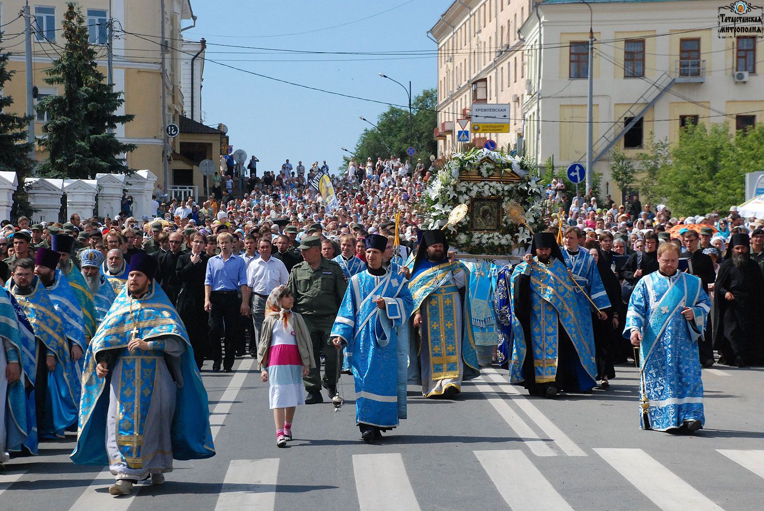 По окончании Литургии от Кремля к месту обретения Святыни отправился общегородской крестный ход с чудотворным "Ватиканским" списком Казанской иконы. Тысячи людей приняли участие в этом торжественном шествии.