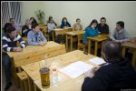 В этот вечер молодые православные люди обсуждали возможные пути социального служения. В начале беседы диакон Виталий Семёнов, руководитель молодёжной группы «Рассвет», рассказал о братствах и сестричествах милосердия, о цели и структуре таких организаций.