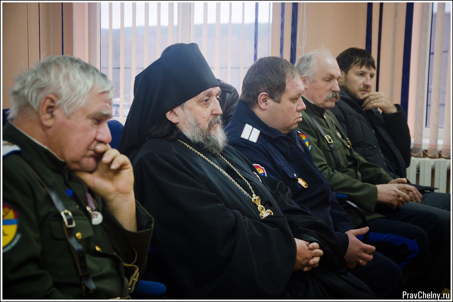 28 ноября в Свято-Вознесенском Архиерейском подворье г. Набережные Челны состоялось встреча представителей Волжского казачьего войска и духовенства Закамского благочиния. Атаман Сергей Дедюев, казачий полковник Симбирского окружного казачьего войска, и председатель Отдела Татарстанской митрополии по взаимодействию с казачеством иерей Анастасий Головин уже давно ведут активную совместную деятельность на территории Спасского благочиния Чистопольской епархии. Пришло время налаживать подобное сотрудничество и в Закамском регионе Татарстана, территориально входящего в юрисдикцию Волжского казачьего войска. Перед казаками Челнов, Нижнекамска и Мензелинска с отчетом о работе выступил отец Анастасий Головин. Председатель Отдела митрополии по взаимодействию с казачеством ознакомил собравшихся с результатами проделанной за уходящий год работы и планами на год наступающий.