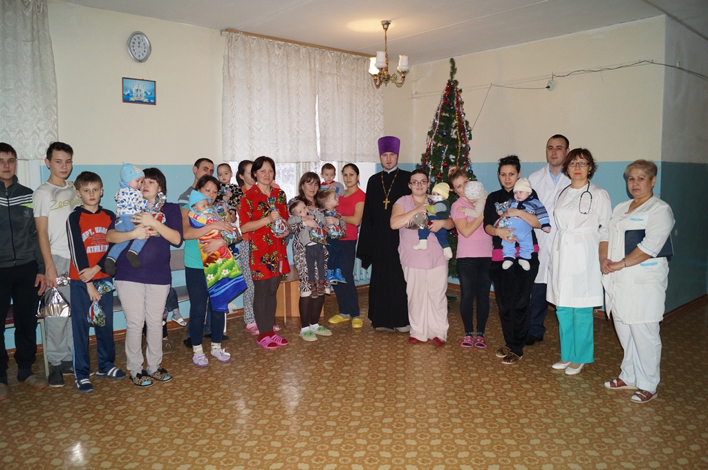 Священник поздравил всех с прошедшем праздником Рождества Христова и грядущим Крещением Господа Нашего Иисуса Христа. Пожелал мира, добра, помощи Божией и скорейшего выздоровления, а будущим роженицам – здоровых малышей. Отец Виталий преподнес детям и мамам праздничные подарки.