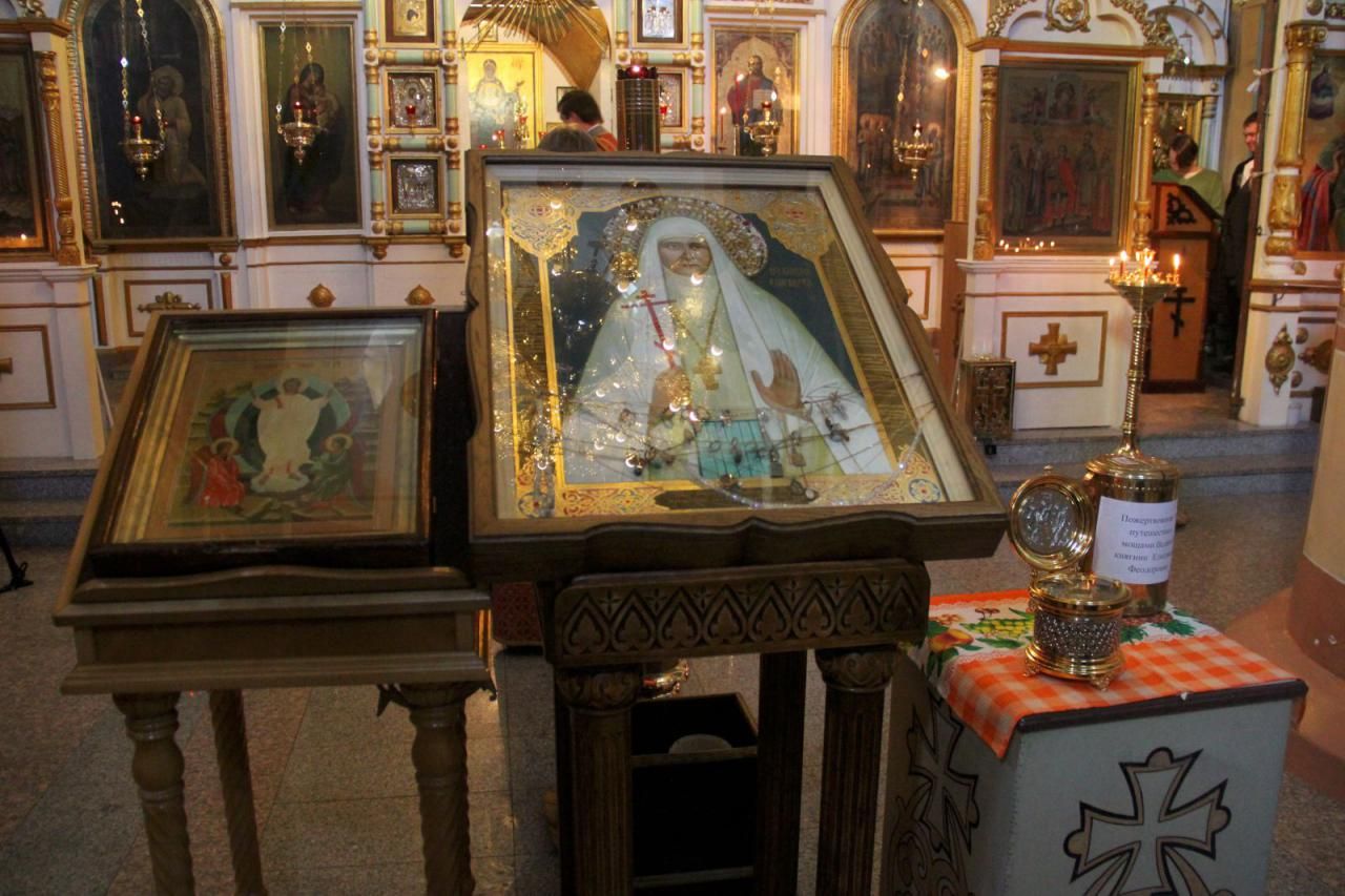 Особенную торжественность сестринскому юбилею придало пребывание в храме на Литургии ковчега с частицей мощей преподобномученицы великой княгини Елисаветы Федоровны, святой покровительницы сестринского движения в России, и ее чтимой иконы. Святыни в храм были принесены сестрами из г. Алапаевск, где святая Елисавета приняла мученический венец за Христа.