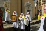 Литургия закончилась пасхальным крестным ходом, во время которого сестры благоговейно несли перед молящимися мощи св. прмц. Елисаветы.